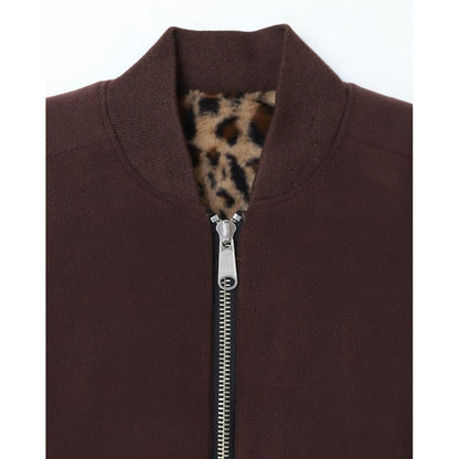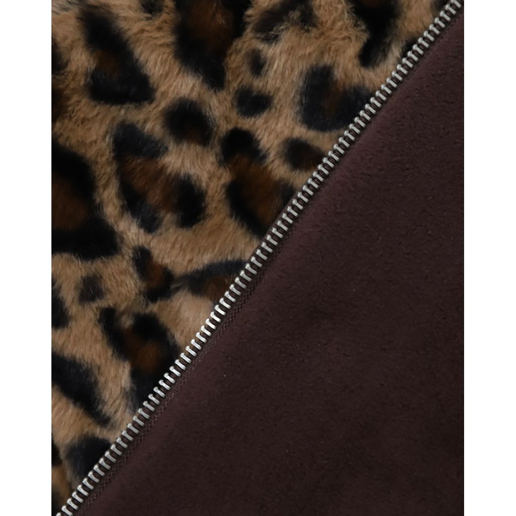 -アクセントになるレオパードファーとシンプルで着回し抜群の無地フリースのリバーシブル仕様