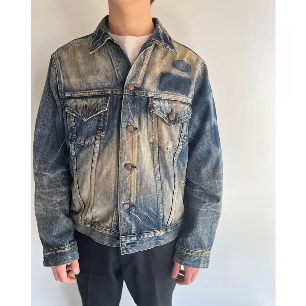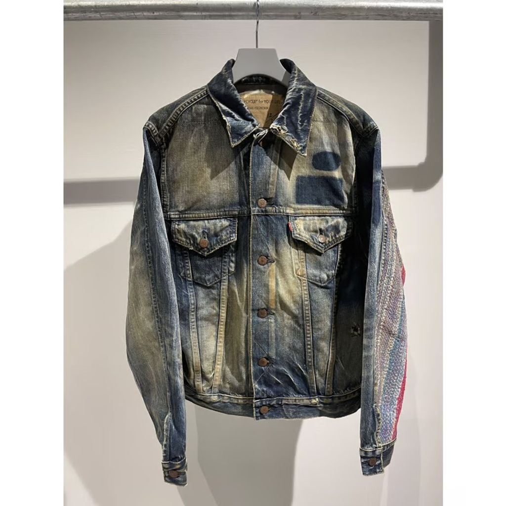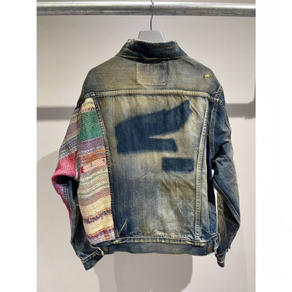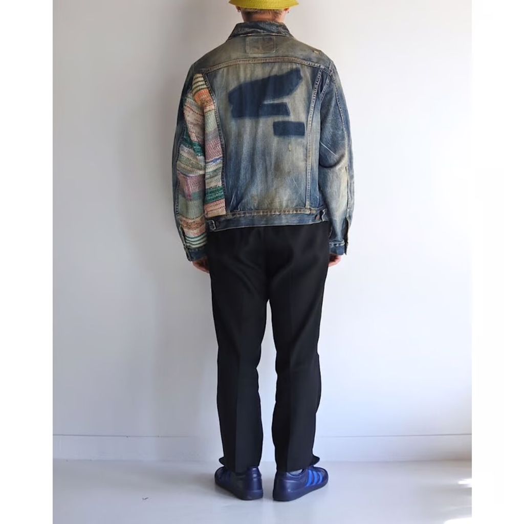 デッドストックのデニムジャケットにヴィンテージのラリーキルトで切り替えたアイテム