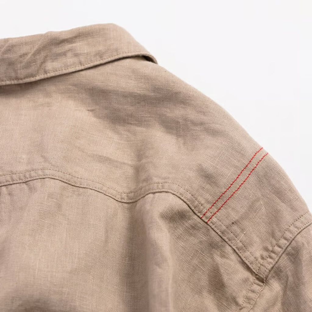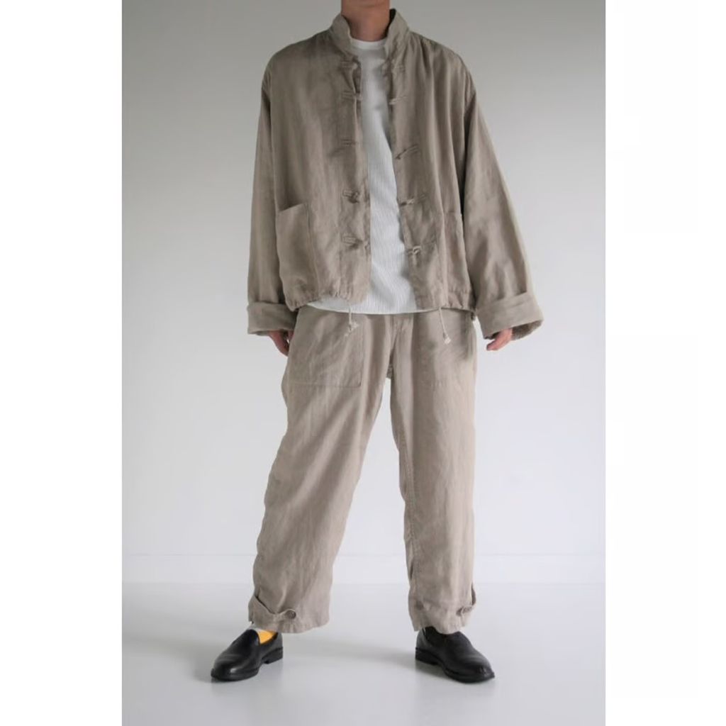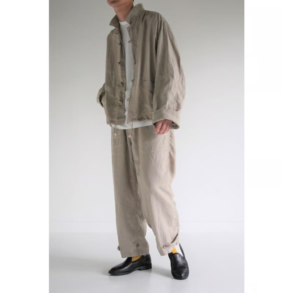 上質なフレンチリネンを使用しているため、適度な落ち感のあるシルエットが現れます。