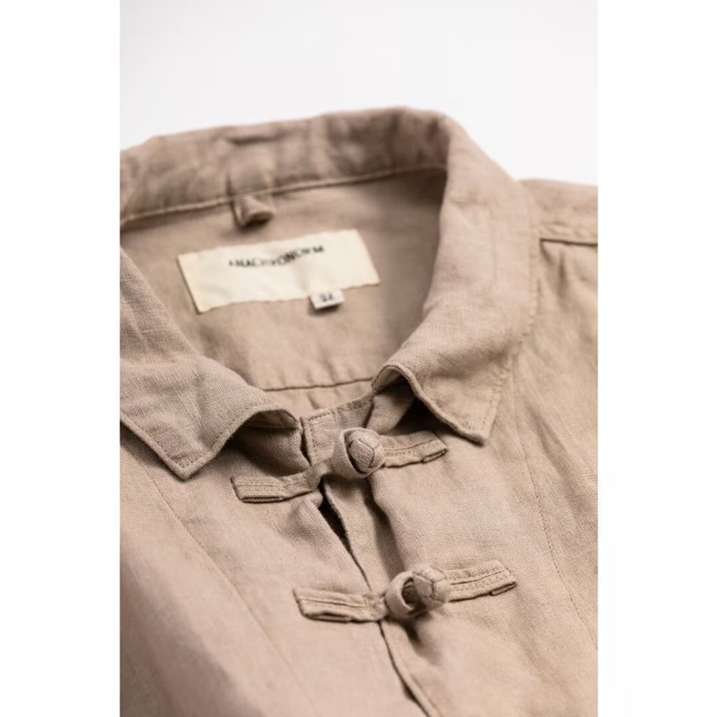 カバーオールシャツのシルエットにチャイナシャツのディテールをミックスしたデザインとなっています。