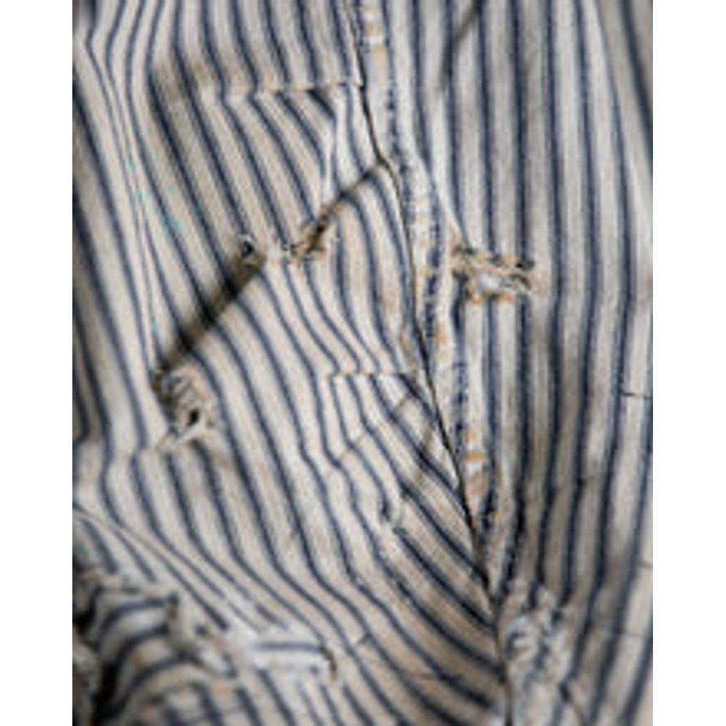経糸緯糸ともに、14/1の糸を使用し、岡山県で作られた9ozのヒッコリーストライプ生地です。