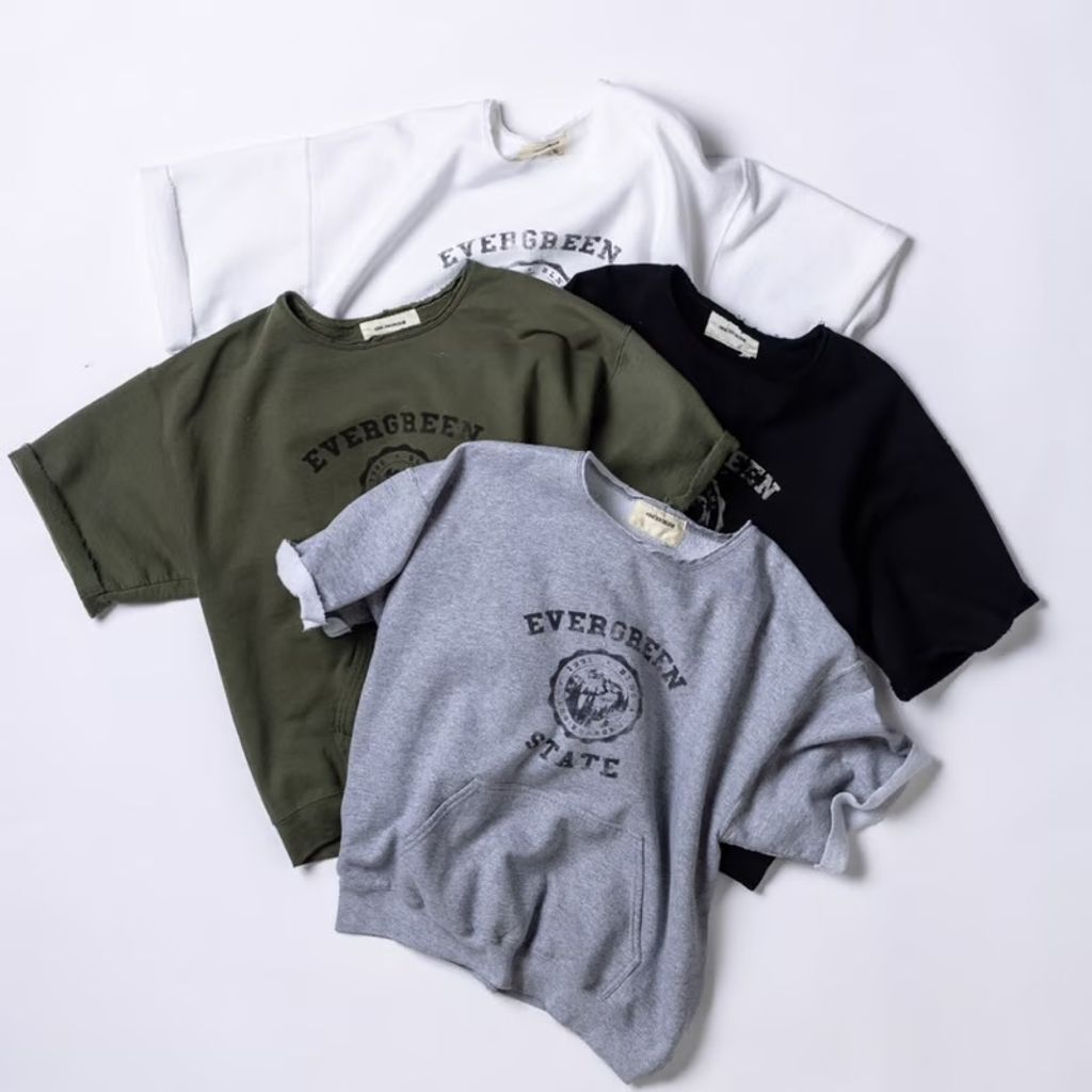 アイテム : カレッジ カットオフ 半袖スウェットパーカー]