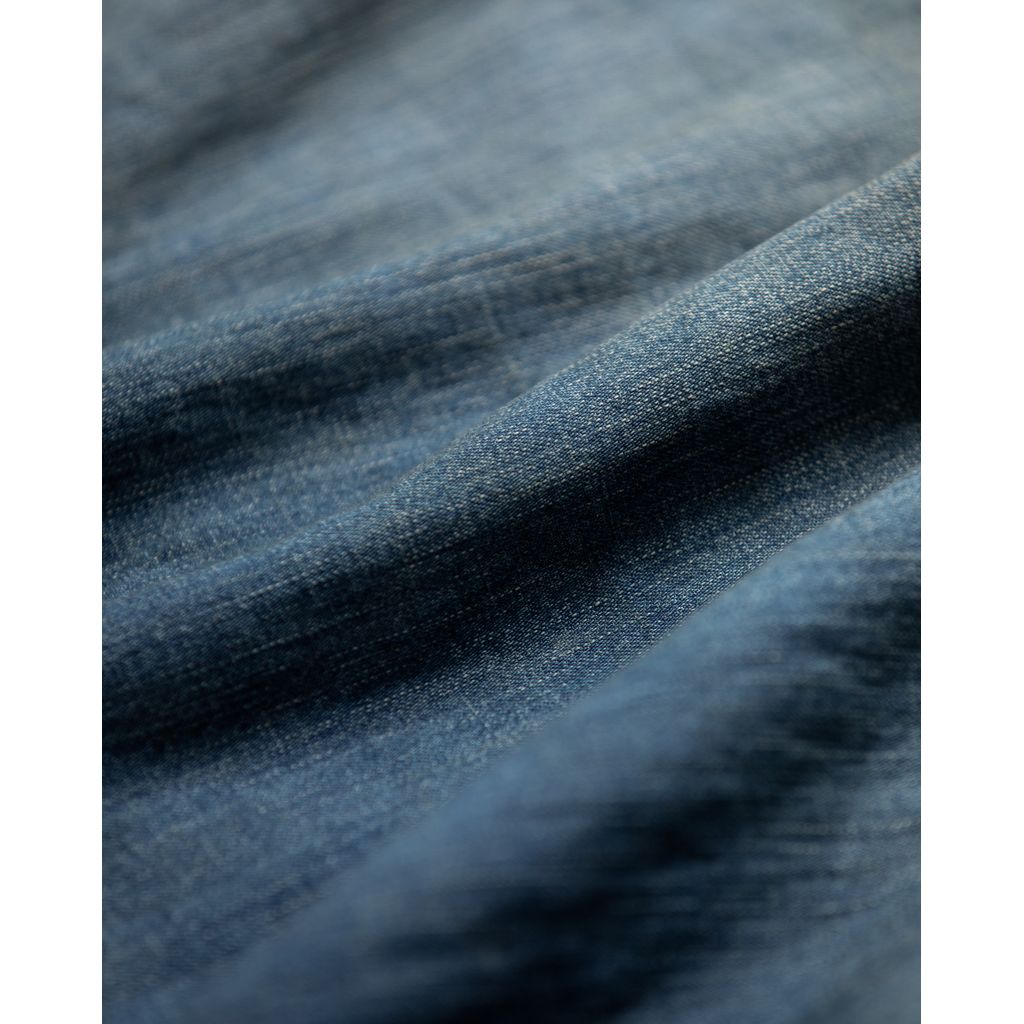 経糸ジンバブエコットン100%のムラ糸、ヨコ糸に綿麻混紡糸を打ったライトオンスデニム。