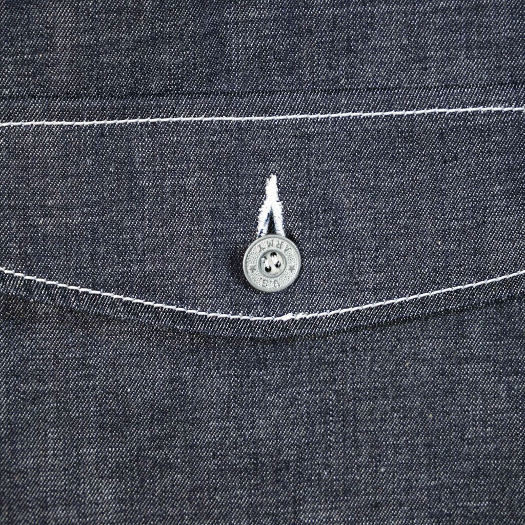 オリジナルはヴィンテージ市場において、とても希少な40年代のWW2 US ARMY M-41 DENIM COVERALLをベースに制作。 素材にはムラ糸を使用し、合成や混合を含まない純粋な天然インディゴ染料(本藍)を使用し、7回の重ね染めを 施しています。ボタンは「US ARMYメタルボタン」を再現し使用しております。また綿糸を使用し縫製する事で、 縫い目に伸性が生まれ、糸が生地と一緒に縮み、独特な拗れが生じます。この独特な拗れのお陰で、特殊なアタリが生まれます。着用、洗濯を繰り返すことで、濃淡のある美しい色落ちと経年良化を楽しむことが出来ます。