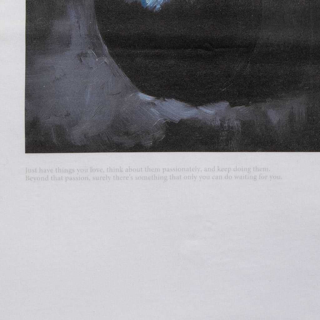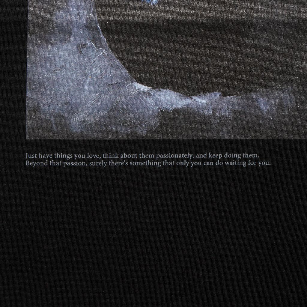 「黒い林檎」を描いた油絵を大胆にプリントしたグラフィックTシャツ。
