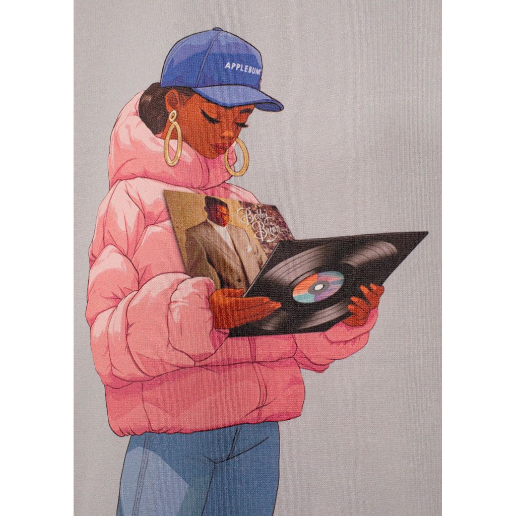APPLEBUMのキャップをかぶった女の子が、レコードショップで『Don't Be Cruel』をピックしてるワンシーンを落とし込んだTシャツ。
