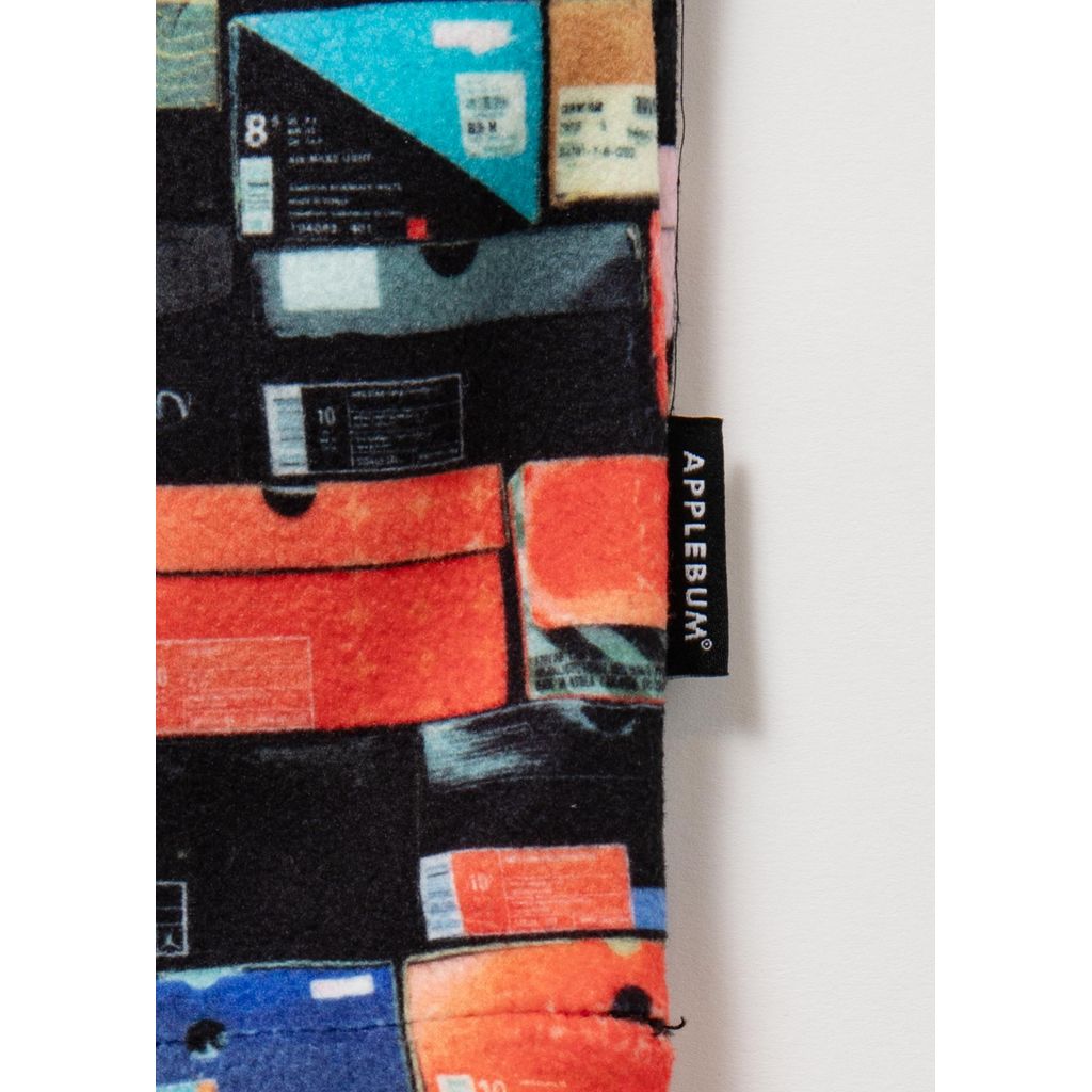APPLEBUMを代表するグラフィックデザインの一つで、名作と呼ばれるスニーカーボックスを積み重ねた「K.B.A.S.」(Kickz Box All Stars)柄を大胆に落とし込んだフリースジャケット。