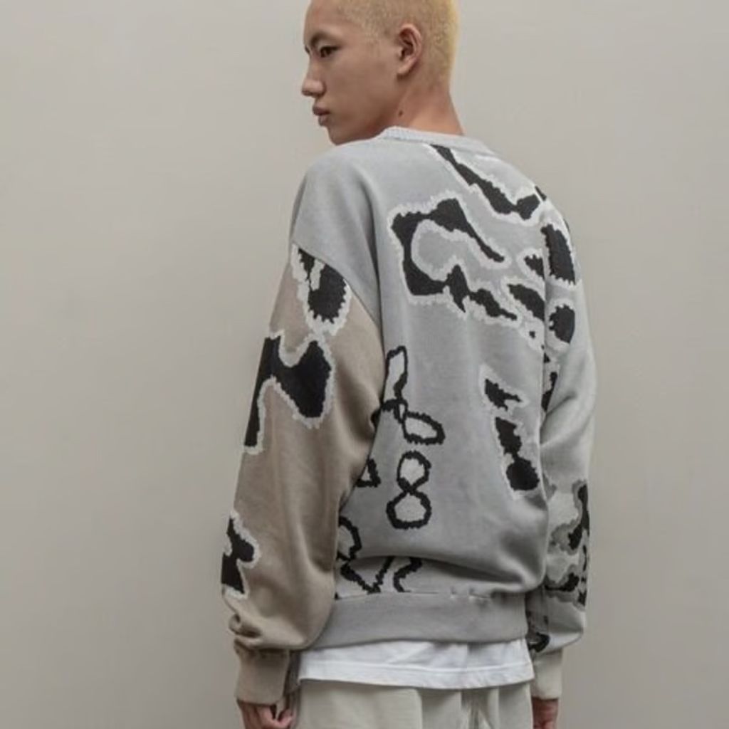 前身頃、後身頃、両袖パーツにジャカード織りによるシーズナブルグラフィックデザイン