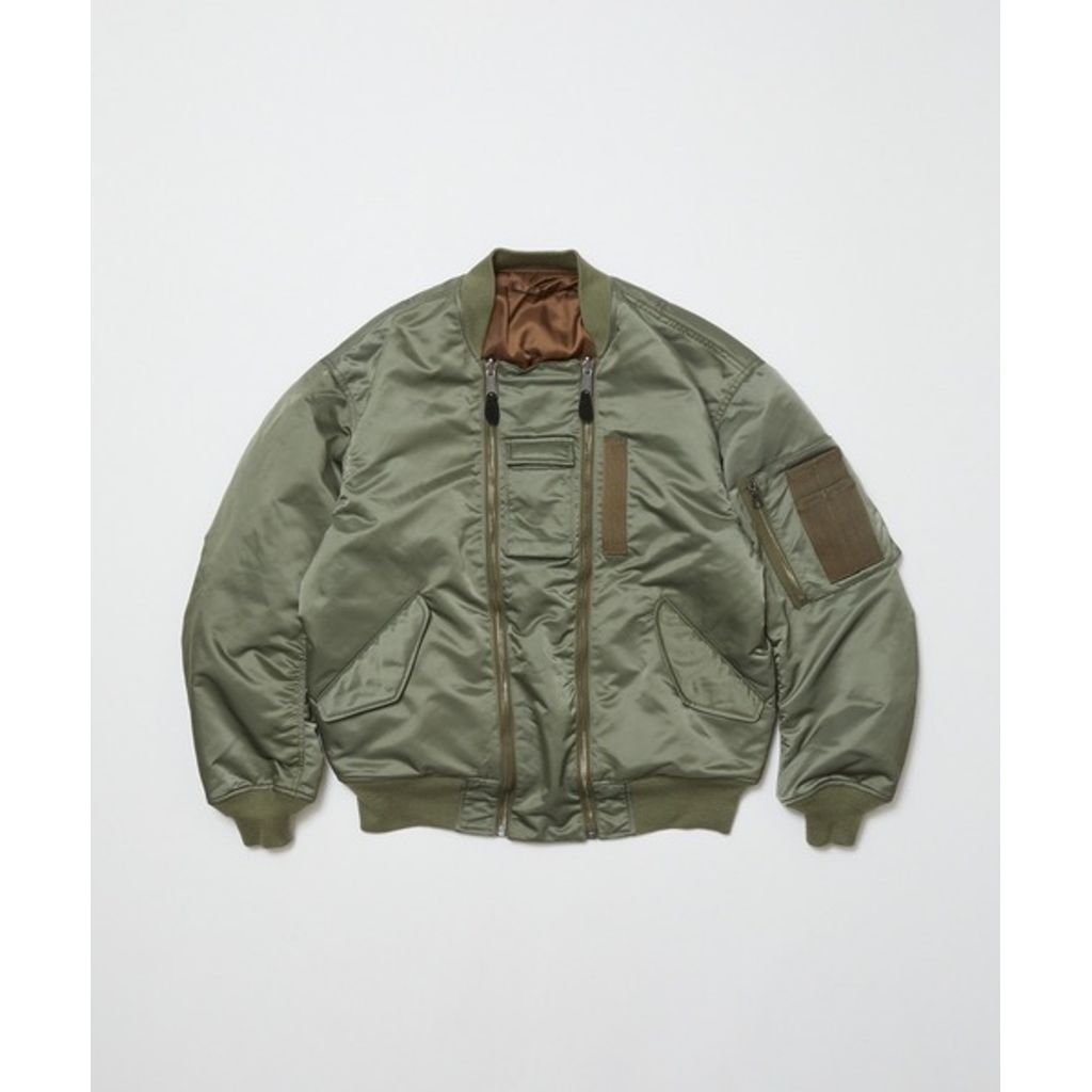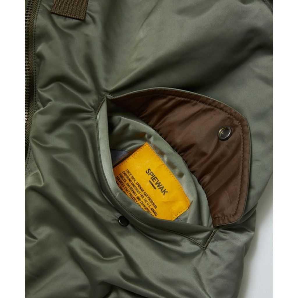 米国発ミリタリー・ワークウエアブランド〈SPIEWAK〉との協業企画。特徴的なダブルジップフロントのMA-1タイプボンバージャケット。ヴィンテージヘビーナイロンツイル素材にシンサレート中綿。リバーシブル。