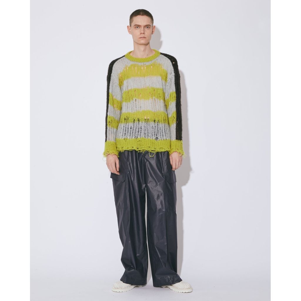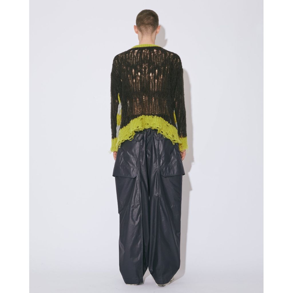 ・カーゴパンツの構造線にスリットを入れ脇線を下に落とした独特なO脚シルエットが特徴