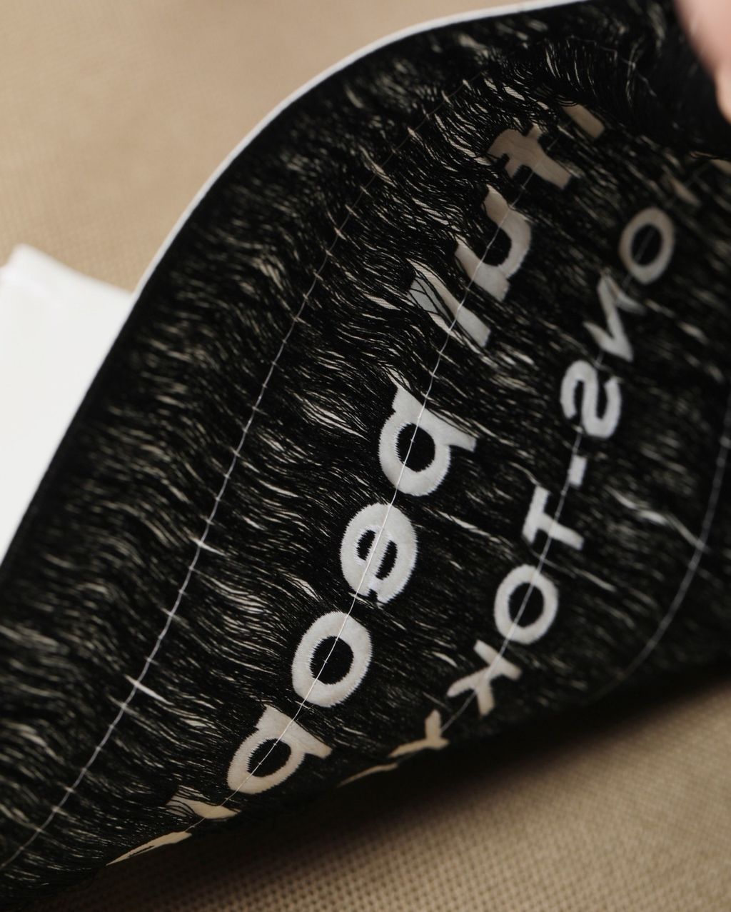 ・表のビッグタグは再生ポリエステル糸を使用しジャガード織で作成