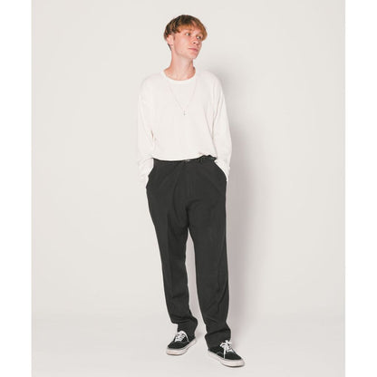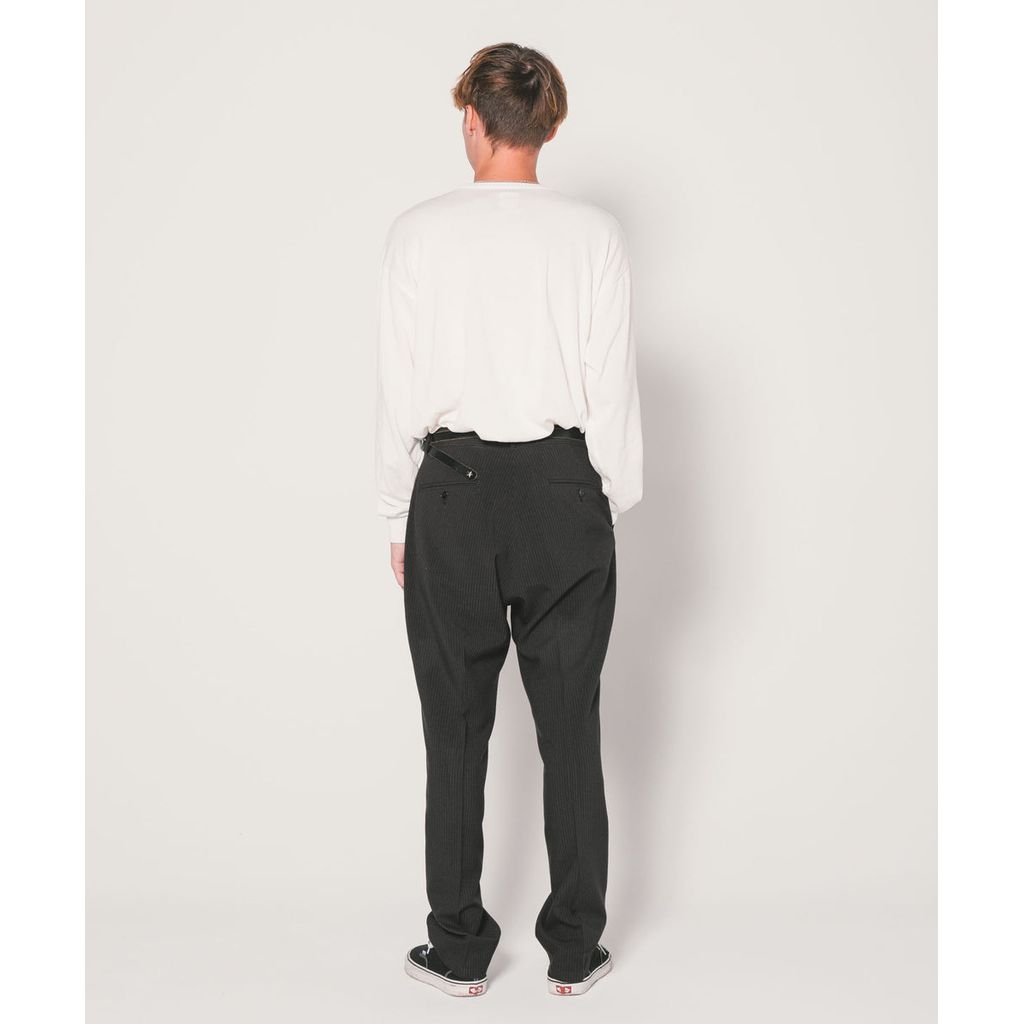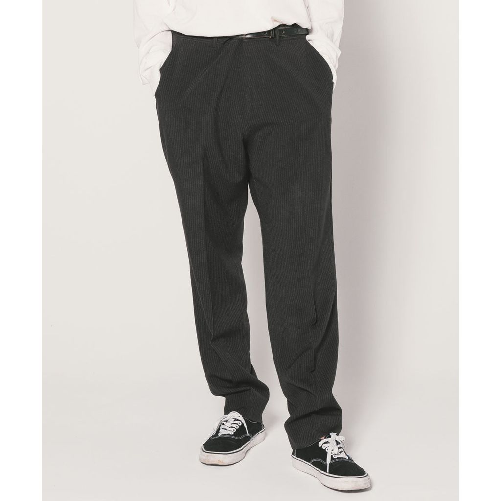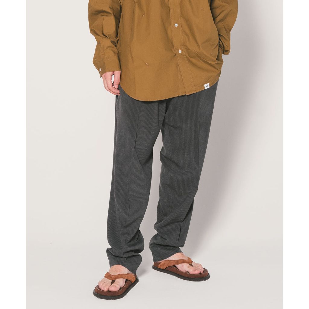 ウールライクな質感が特徴のポリエステル・レーヨン素材を使用。計算されたゆるいテーパードシルエットが特徴の定番シルエット『THUNDERS』に落とし込んだ。24SB5612とセットアップとして着用が可能。