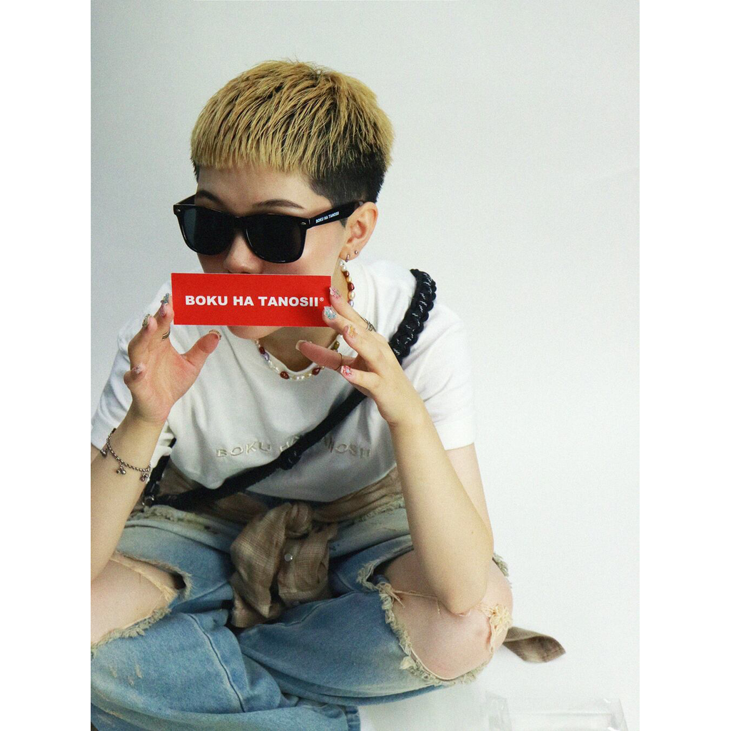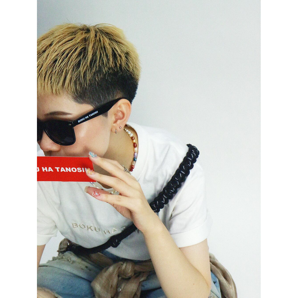 サイドにBOKU HA TANOSIIのプリントが入ったサングラスです。