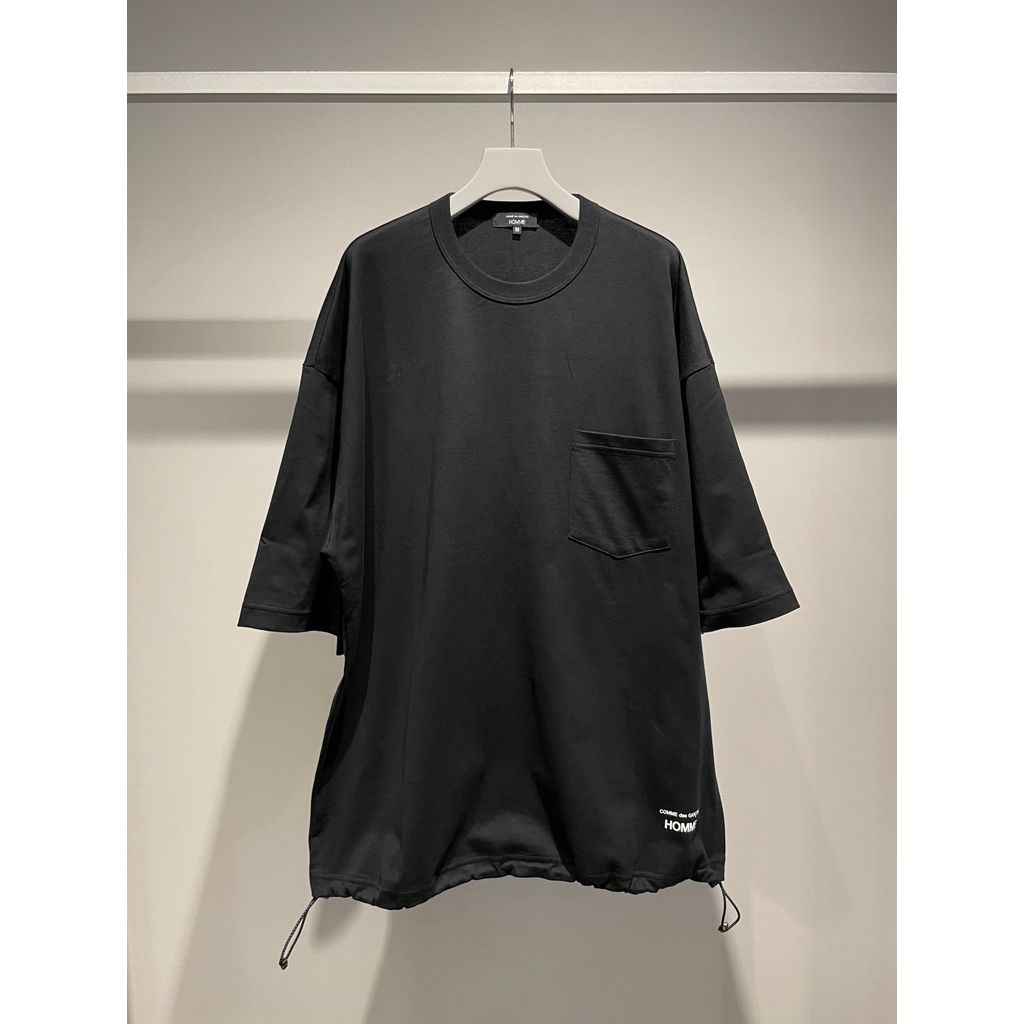 肌触りの良いコットン天竺を生地に使用したポケットTシャツはドロップしたショルダーにゆったりとした身幅によるシルエットとなったBIGシルエットなデザイン。裾部分には幅を調整するスピンドルが加えられており、紐を絞る事でシルエットに変化を加えられる事も特徴です。また裾部分にはブランドロゴ『COMME des GARCONS』のロゴをプリントでプラス。シンプルなルックスでありながらもシルエットに変化を加える事が出来るなどのギミックの利いた一枚です。