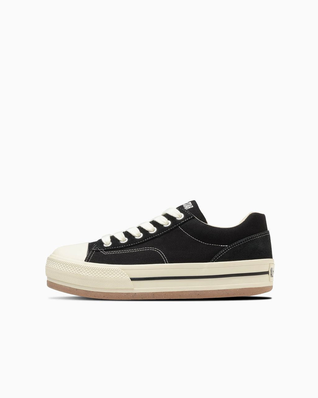 バルカナイズド製法や、トウキャップ、トウガードといったオールスターのアイコニックなディテールが、斬新なシルエットの中にも継承されています。