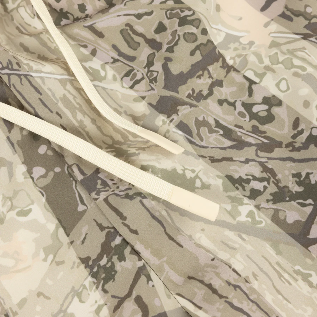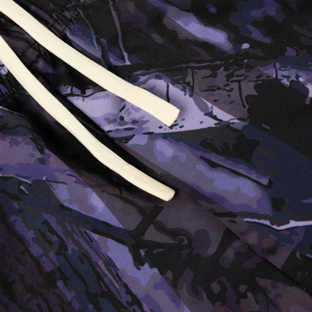内側にドローストリング付きの伸縮性ウエストバンド、裾にサイドスリット