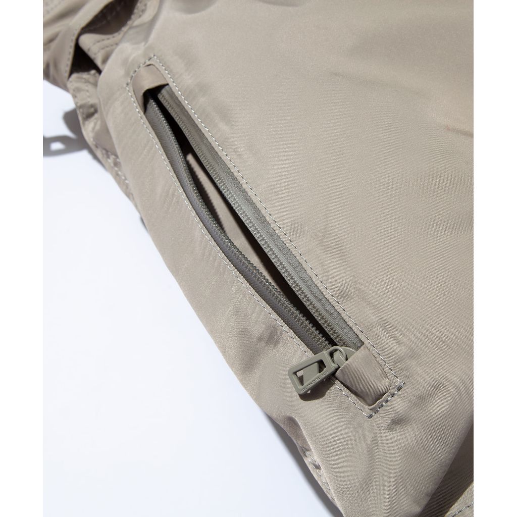 ナイロンとリサイクルナイロンを混紡したし、ツイル組織の上品な印象に仕上げたサスティナブル素材を使用しています。