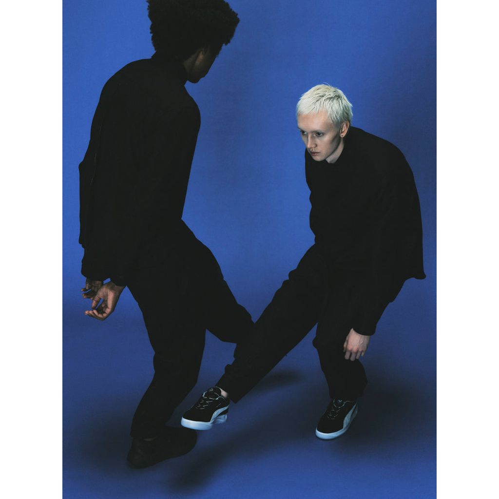 通気性を高めるパーフォレーテッドのアッパーと厚手のソールが特徴のGV SPECIALをベースに、代表モデルのひとつPUMAスエードのビジュアルと、PUMA社製のDISCシステム、そこに半透明のソールを組み合わせる事によって、クラシックとモダンを自然な佇まいで融合させたスニーカー。