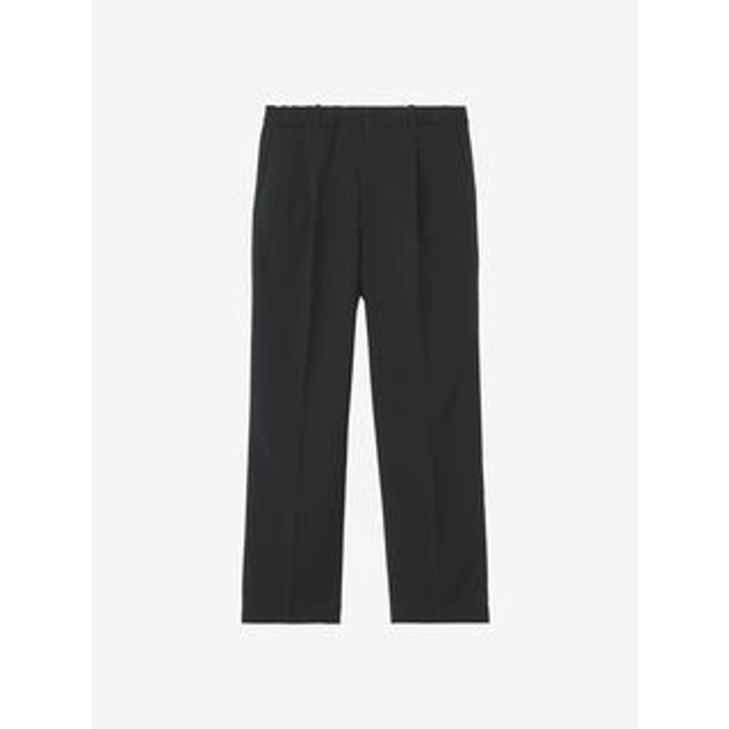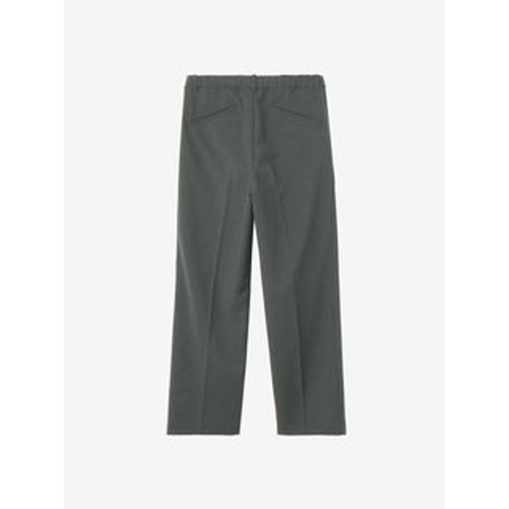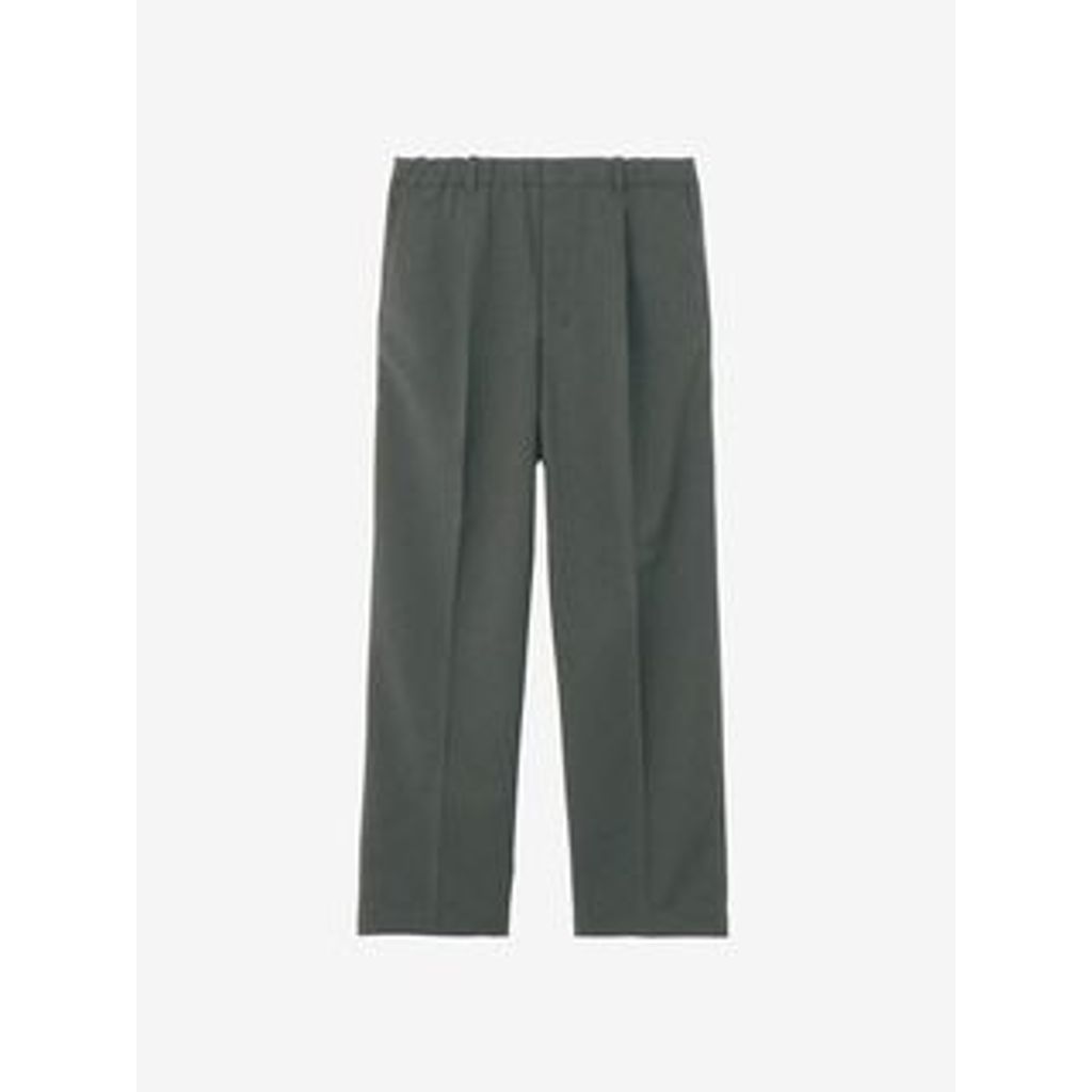 ウールのような風合いをもつポリエステル素材を使ったパンツ。ビジネスシーンからきれいめカジュアルまで、幅広いコーディネートに活躍します。