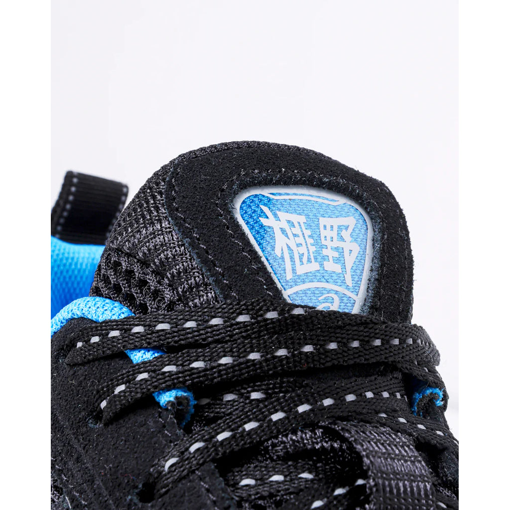 シューズ内側のライニングにはLiberaidersのブランドカラーであるブルーを採用し、全体のダークトーンの仕上がりの対比としてのアクセントとしての存在感を生み出します。