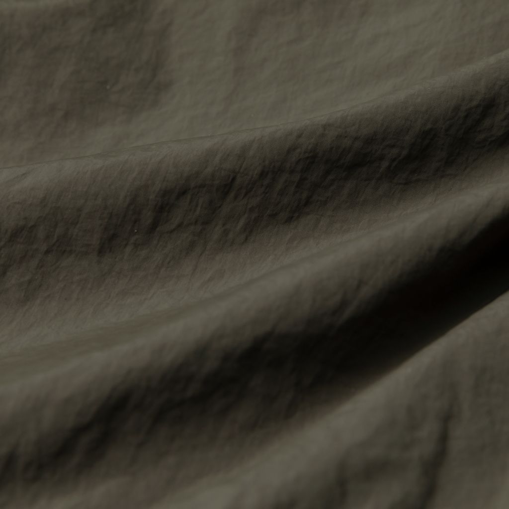 シャリ感のある武光沢のナイロン素材を使用したショートパンツ。ウエストはゴムリブ仕様、両脇にスラッシュポケット、背面左右に両玉縁ポケットを配置したデザイン。右裾に菱形ロゴをラバープリント、左脇にピスネームを挟み込み。ウエスト、レッグにゆとりのあるやや着丈短めのシルエット。2色展開。