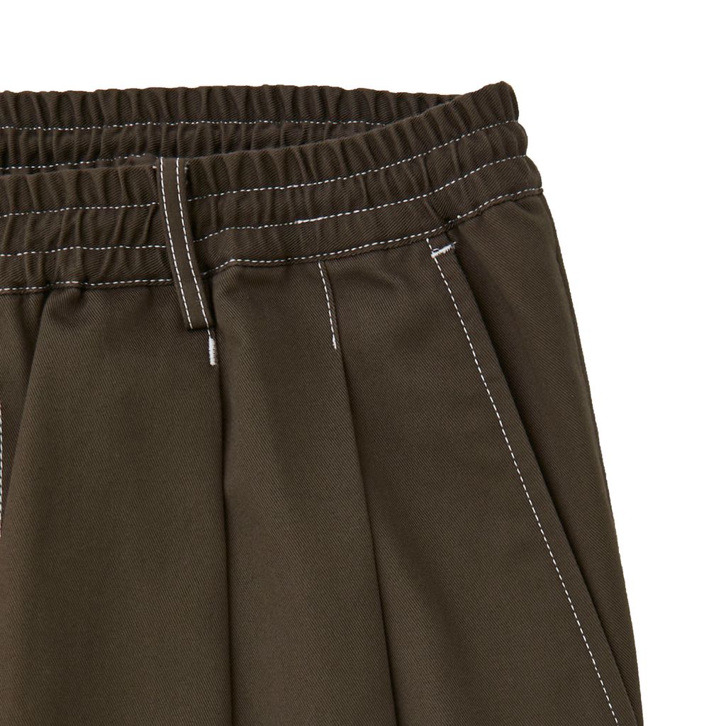 ワイドなシルエットながらシューズを選ばないブランドが得意とするリラックスフィットとラウザーズに、90年代に一世風靡した巨大なヒップポケットと配色ステッチのスケーターパンツ仕様。日本製の良質な肉厚チノを使用。