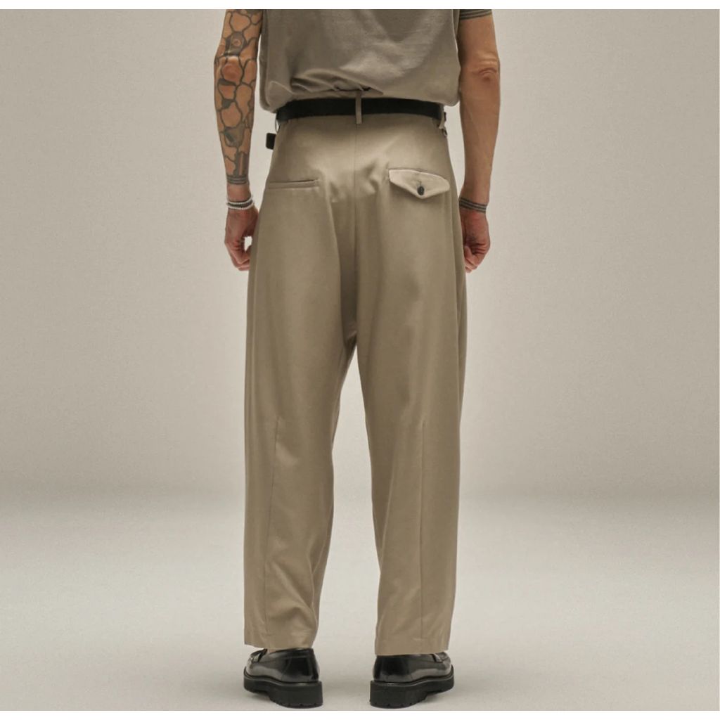 ストリートスタイルでも、ドレッシーなスタイルにもその場に応じてトップスやシューズを変えるだけで様々なスタイルを楽しむことができるバルーンシルエットのトラウザー。ダーツを使用して形成された太めのリラックスフィットはコンセプトでもあるコンフォート仕様。さらにはタックが入ることで洗練された高級感のあるシルエットに。