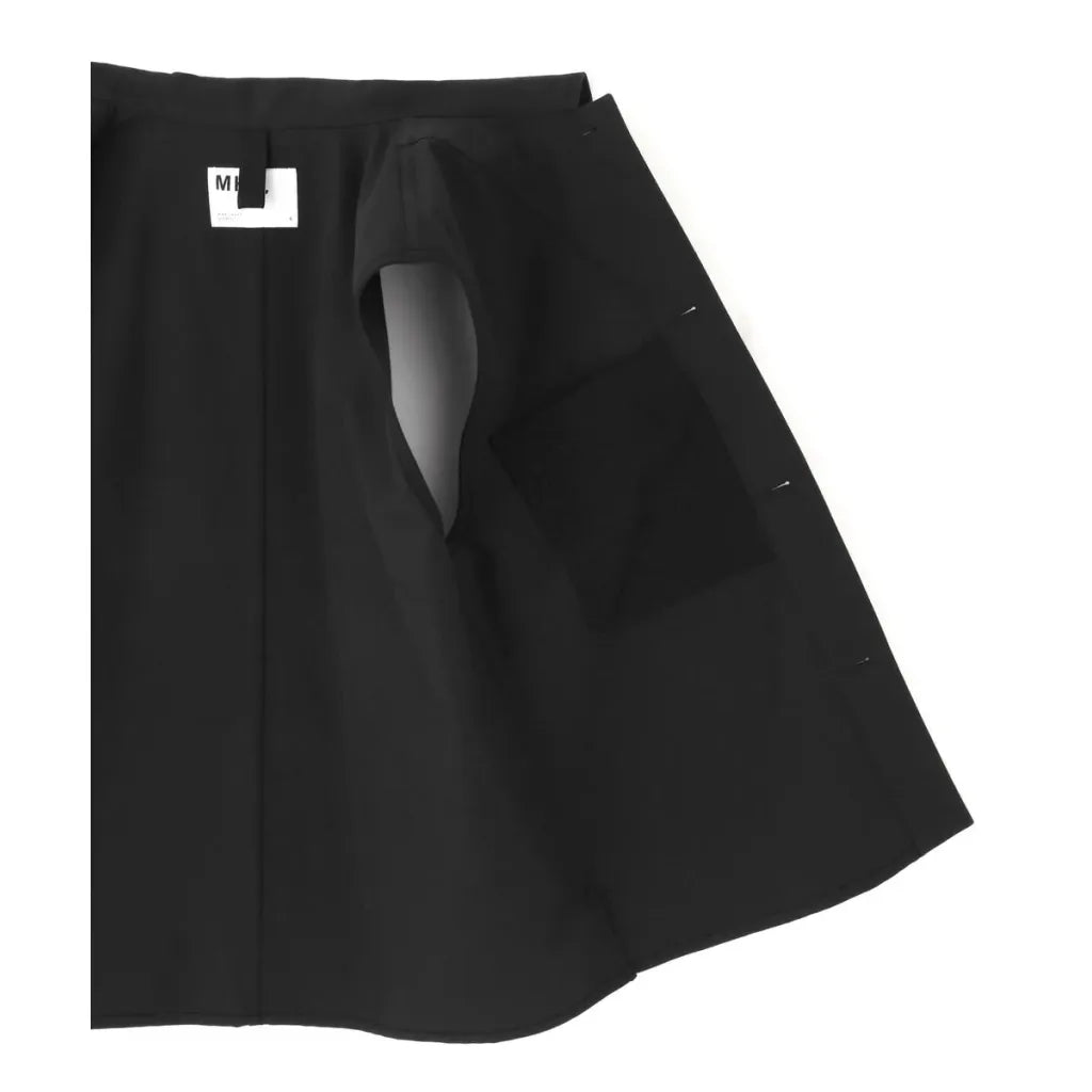 ヒップを覆うロング丈にサイドスリットを入れ、胸に内ポケットを備えたデザイン。シンプルながら素材の存在感が際立つ仕上がり。