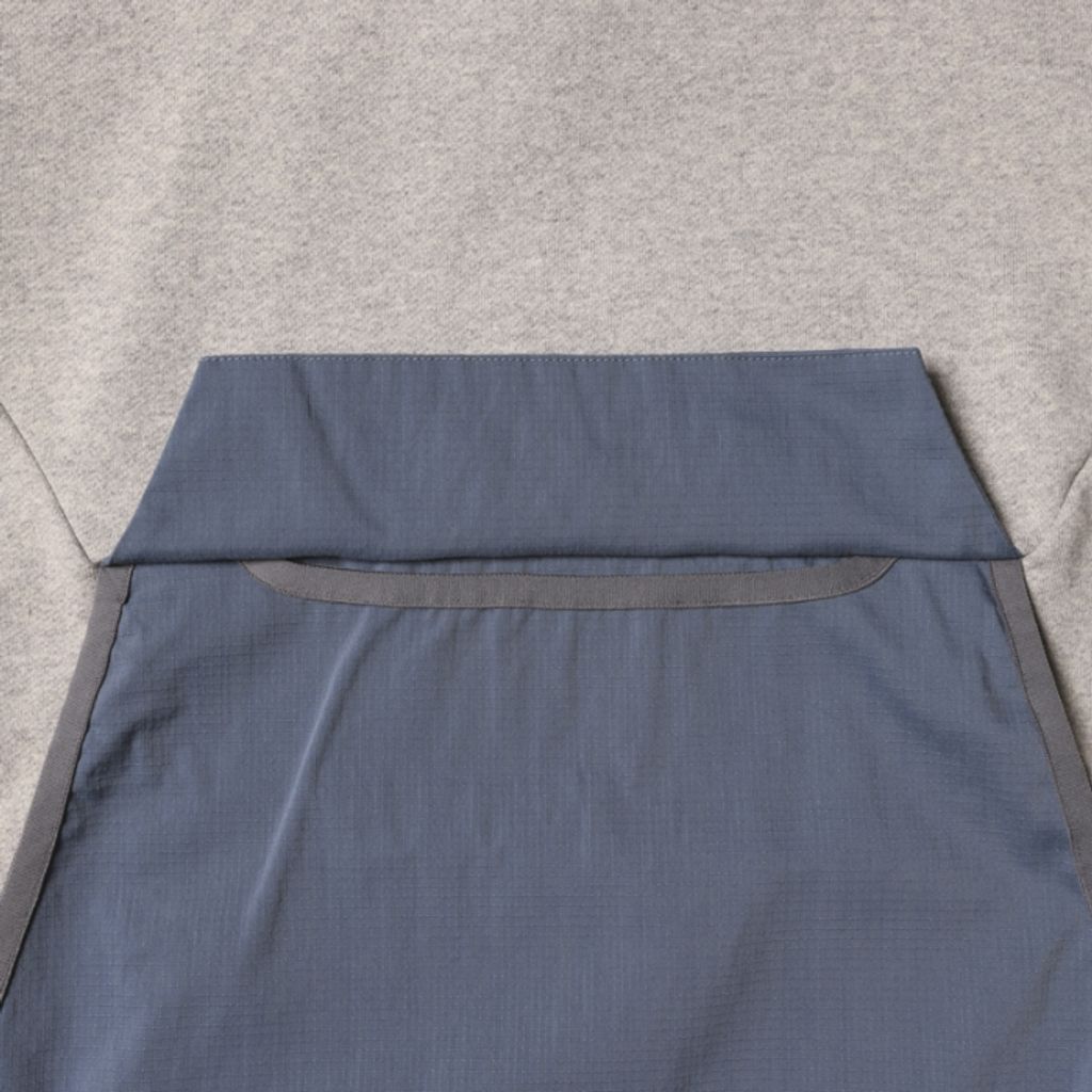 カンガルーポケット部にはNANGAが開発した、難燃素材ヒノックリップストップ素材を使用しデザインと機能性を両立したデザインになっています。
