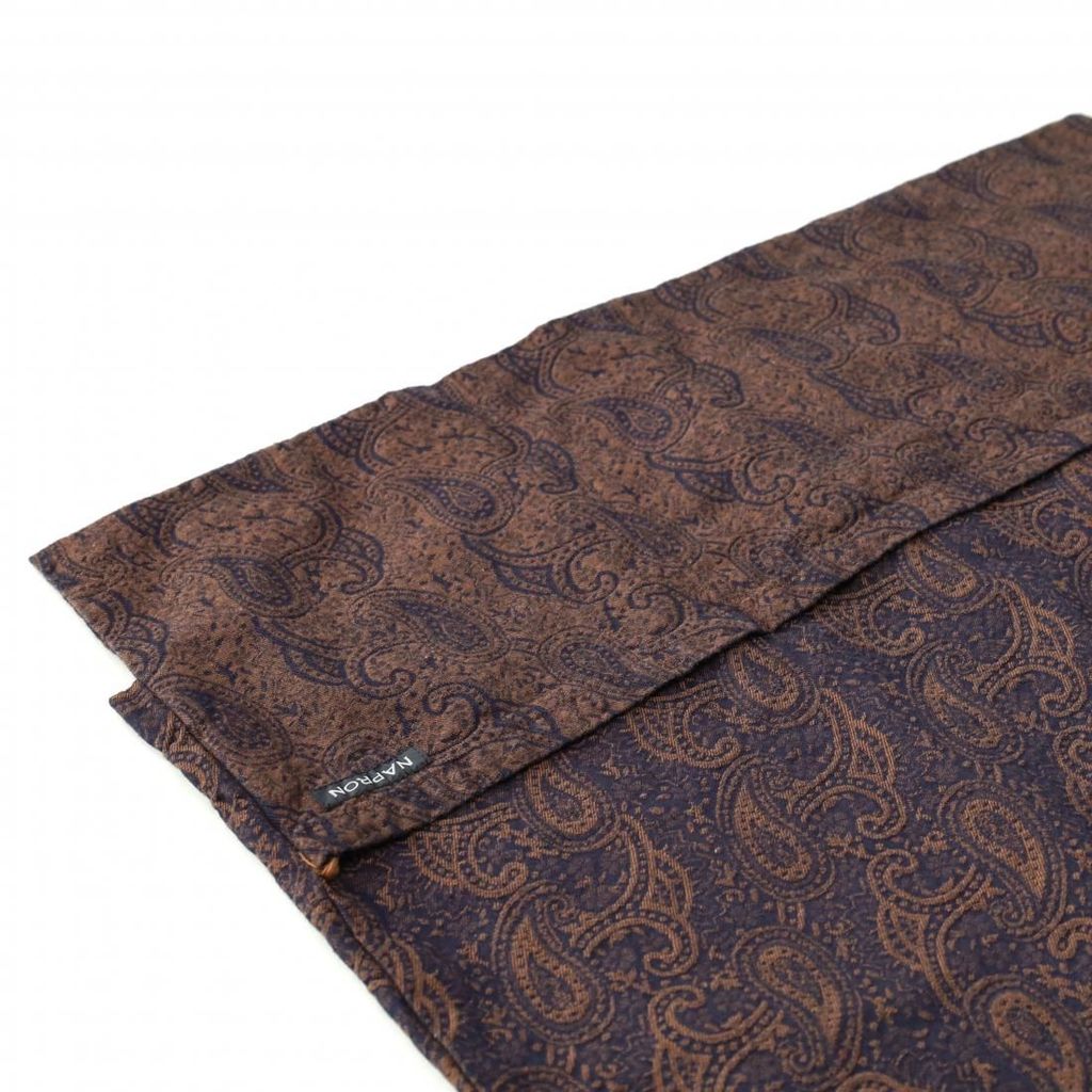 新色となる BLACK は、タテ糸にブラックデニムと同様の硫化ブラック、ヨコ糸にグレーに染めた糸を使い、ジャガードでペイズリー柄に製織しています。