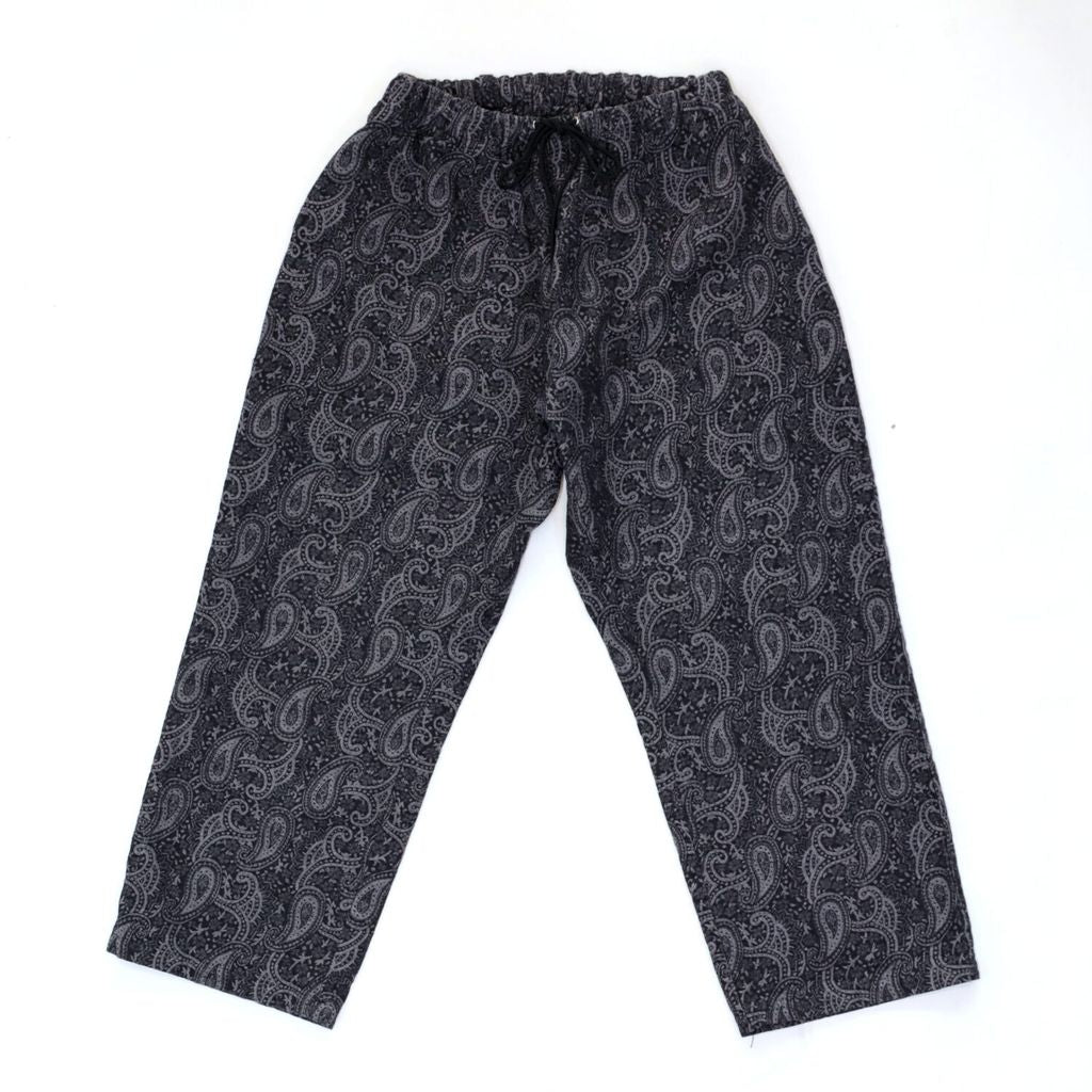 ゆったりとしてテーパーとシルエットが特徴で、ウエストはゴムと紐で調整が可能です。