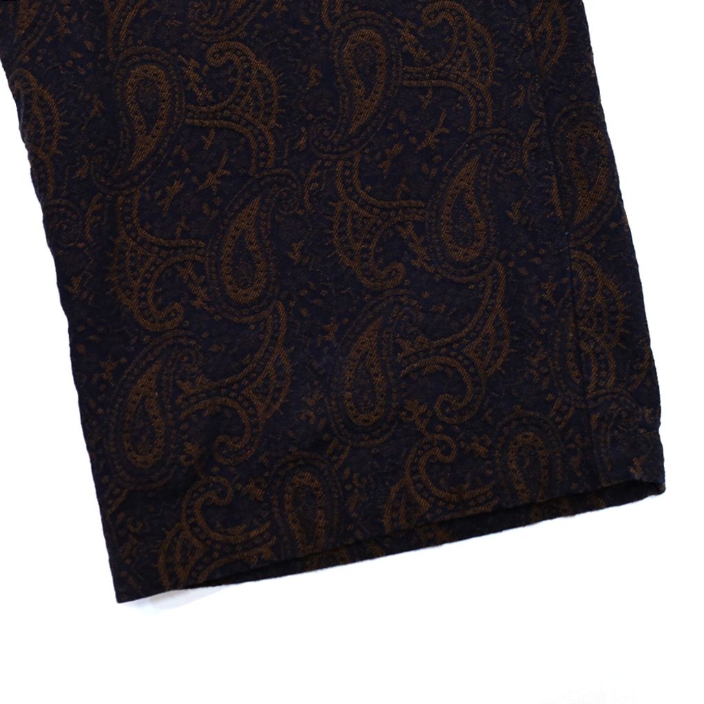 タテ糸にブラックデニムと同様の硫化ブラック、ヨコ糸にグレーに染めた糸を使い、ジャガードでペイズリー柄に製織しています。