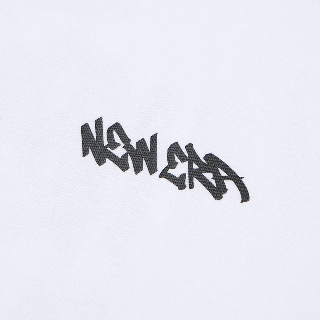 ニューエラに関連するワードをタギング風デザインで表現。8ozのコットン生地を採用。袖口にかけてゆとりを持たせたオーバーサイズドフィット。