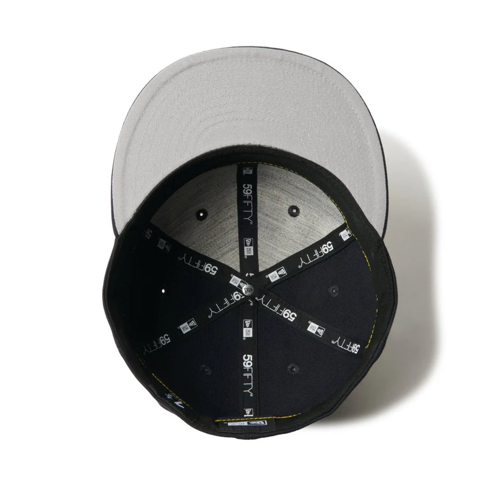 シルエットはフロントパネル内側の芯を取り除いたソフトバックラム仕様の59FIFTY。サイズ調整のない仕様で、約1cm刻みのサイズ展開。頭の小さい方から大きな方まで、ジャストサイズで被ることができます。また、アジャスターがないので、リアのシルエットが美しく、頭の形が綺麗に見えます。
