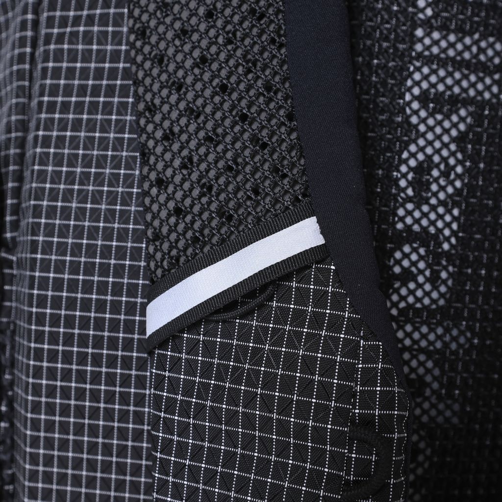 調節可能で目視で内容物を確認できるメッシュポケットを搭載。