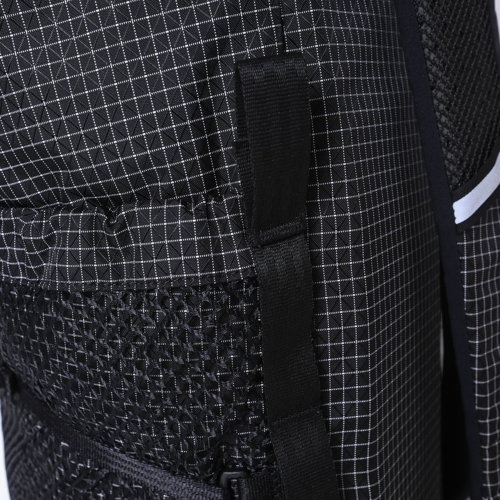本来釣り糸としても使用される引き裂きや引っ張りにとても強い特殊な糸を織り込んだ 格子柄のナイロンリップストップ生地を使用したPUMA×Liberaidersの大容量バックパック。