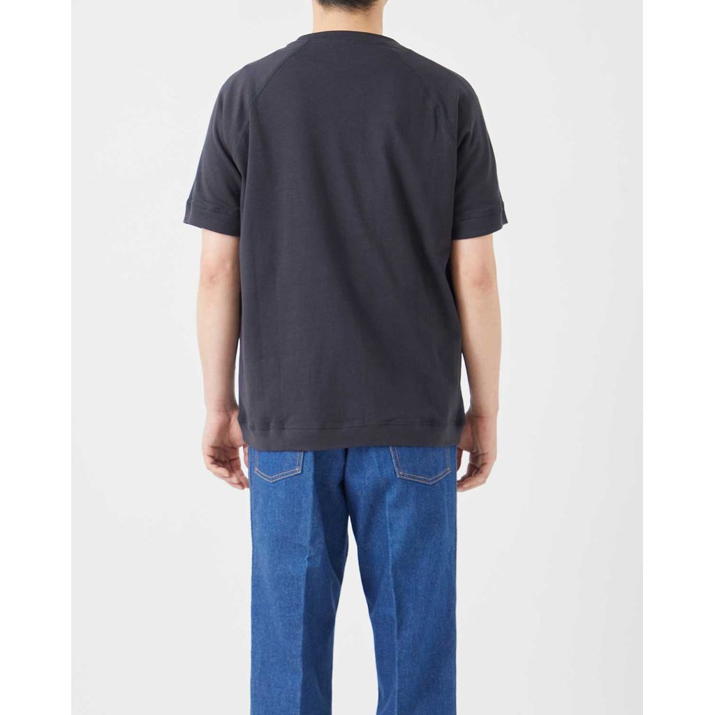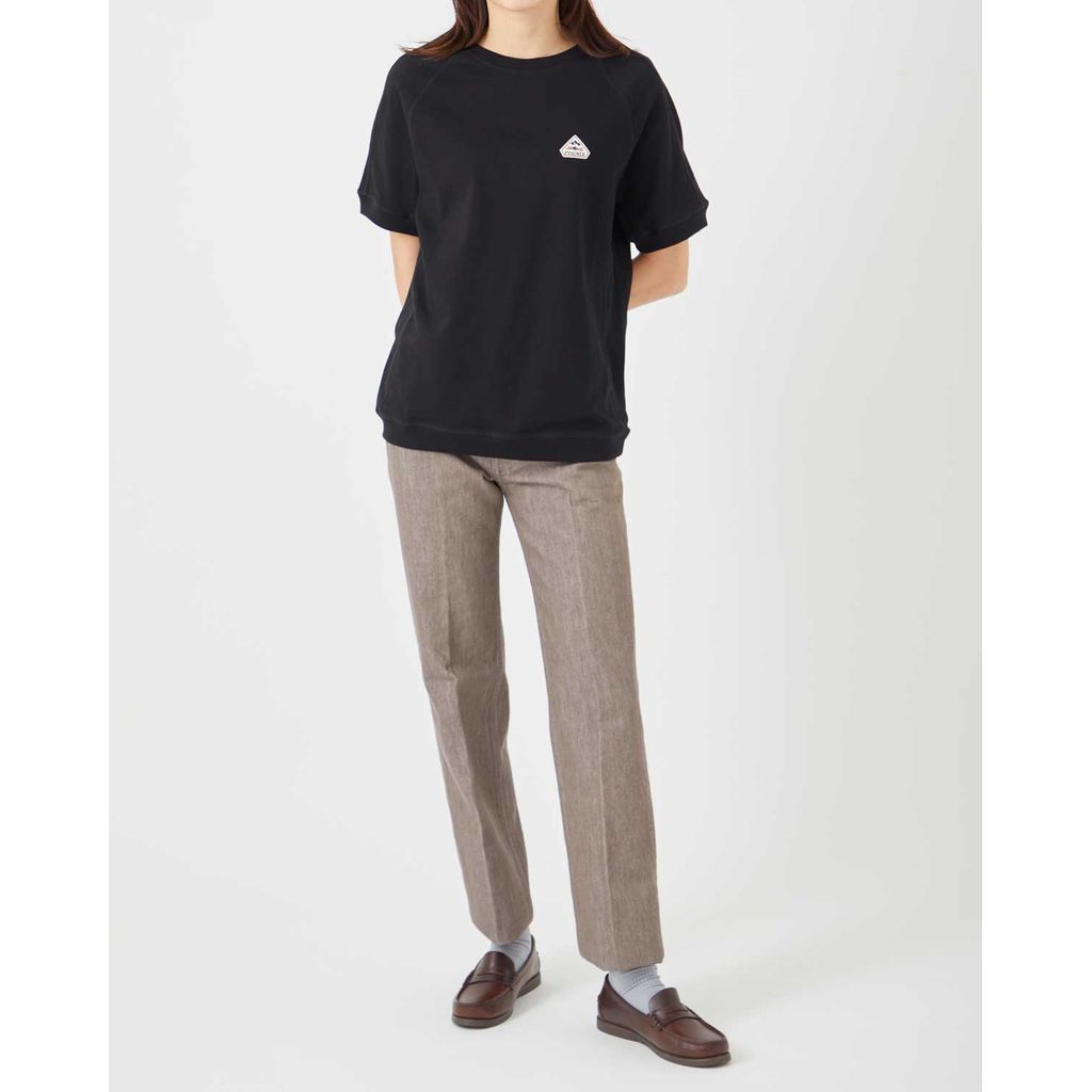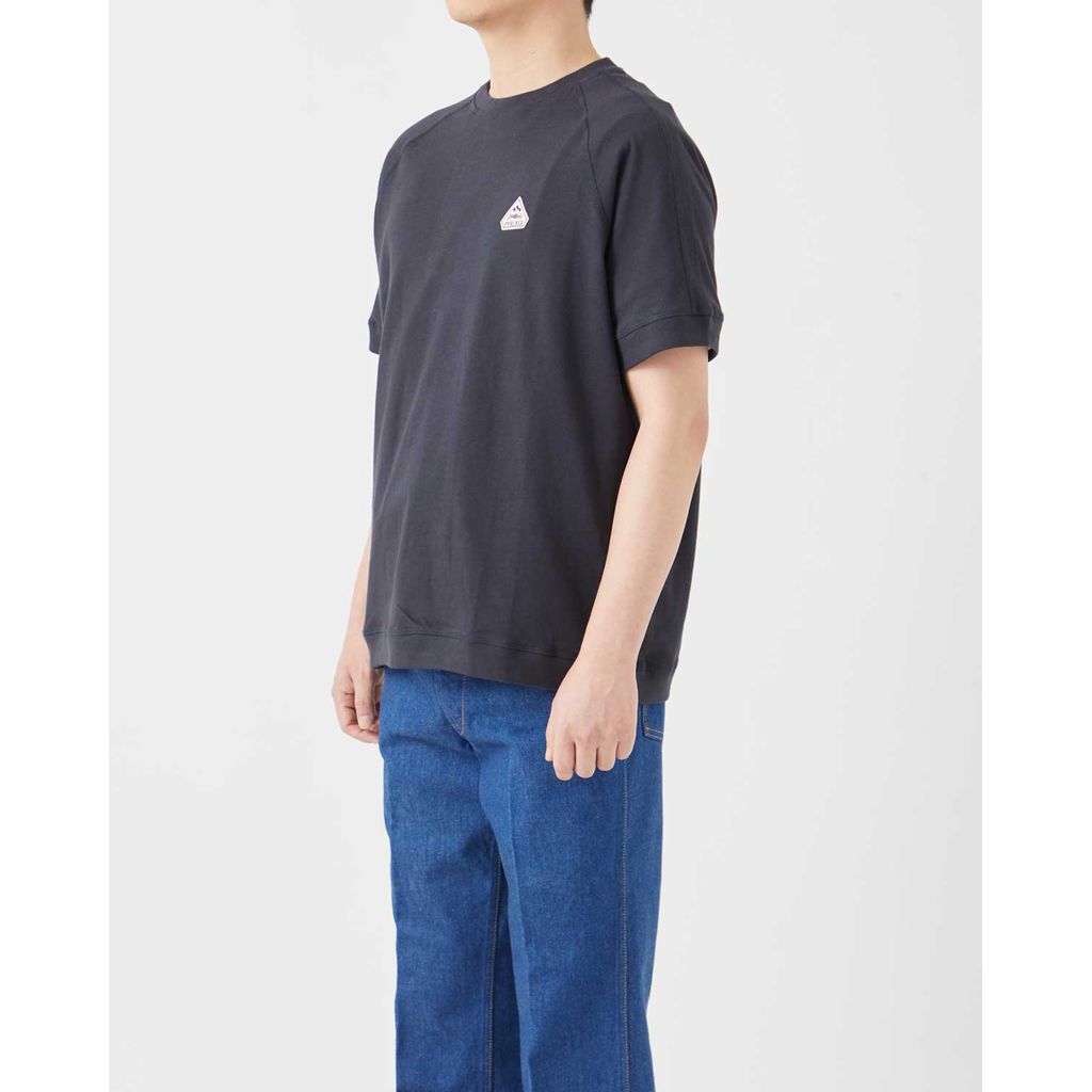 ピークはヘビーウエイトのオーガニックコットン100%を使ったショートスリーブTシャツです。肩回りの運動性を向上させるラグランスリーブにゴロつきを抑えたフラットシームによる縫製、そして身幅に余裕を持たせたフィットによって快適な着心地です。袖口とヘムはリブ仕様になっています。胸にはロゴワッペンが付きます。