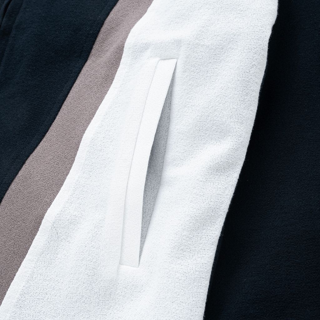 表地にオリジナルで作成したコットン素材のアムンゼン生地、裏地には中綿入りキュプラキルティング生地を使用したジップアップジャケット。身頃の両脇にスラッシュポケット、後背面の左右にボタンアジャスターを付属。カフはヴィンテージのスポーツジャケットに見られる形状。身幅はややタイトなシルエット。50s風の配色切り替えパターンと同色で切り替えたパターンの2色、5サイズ展開。