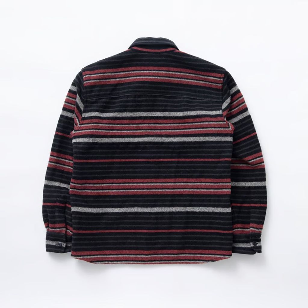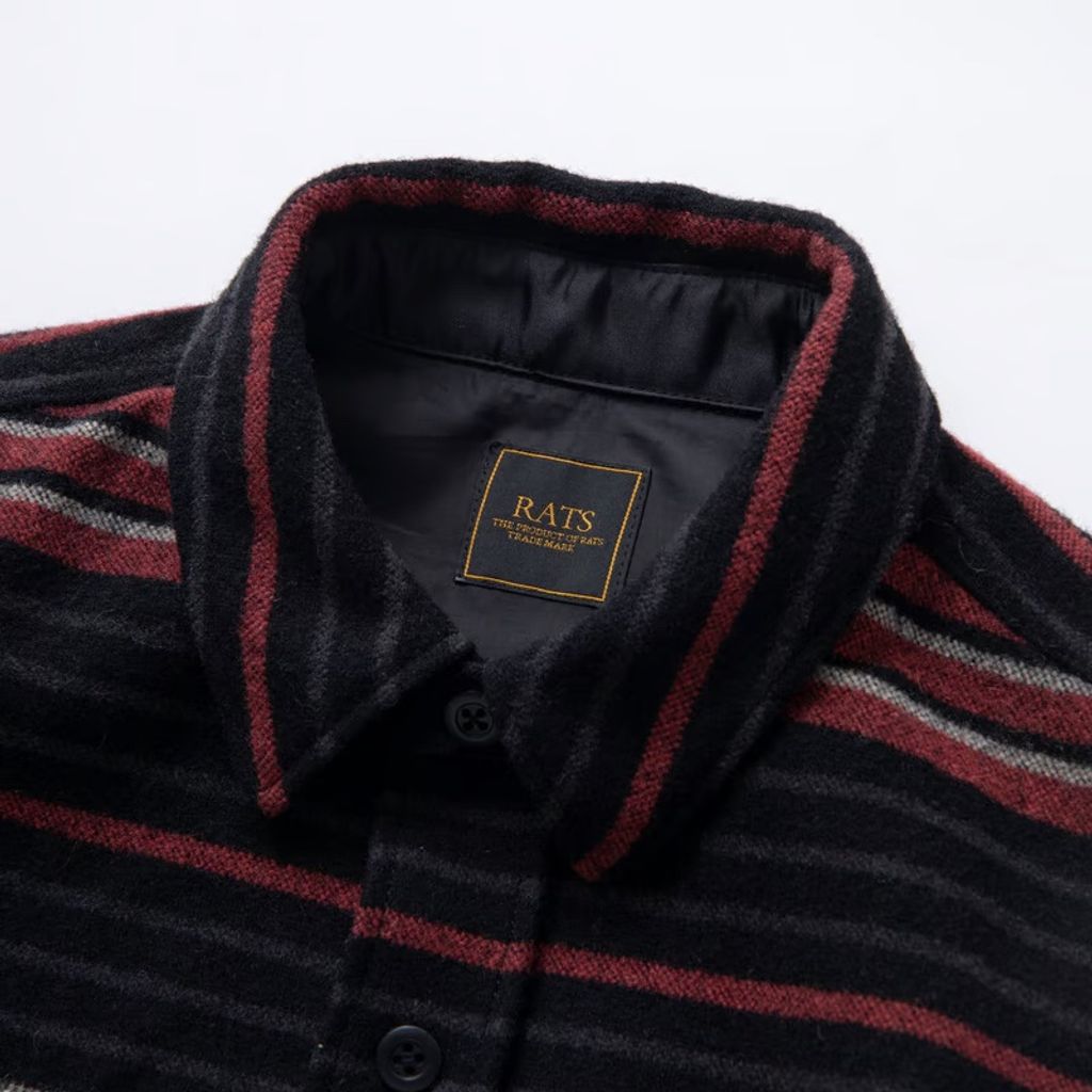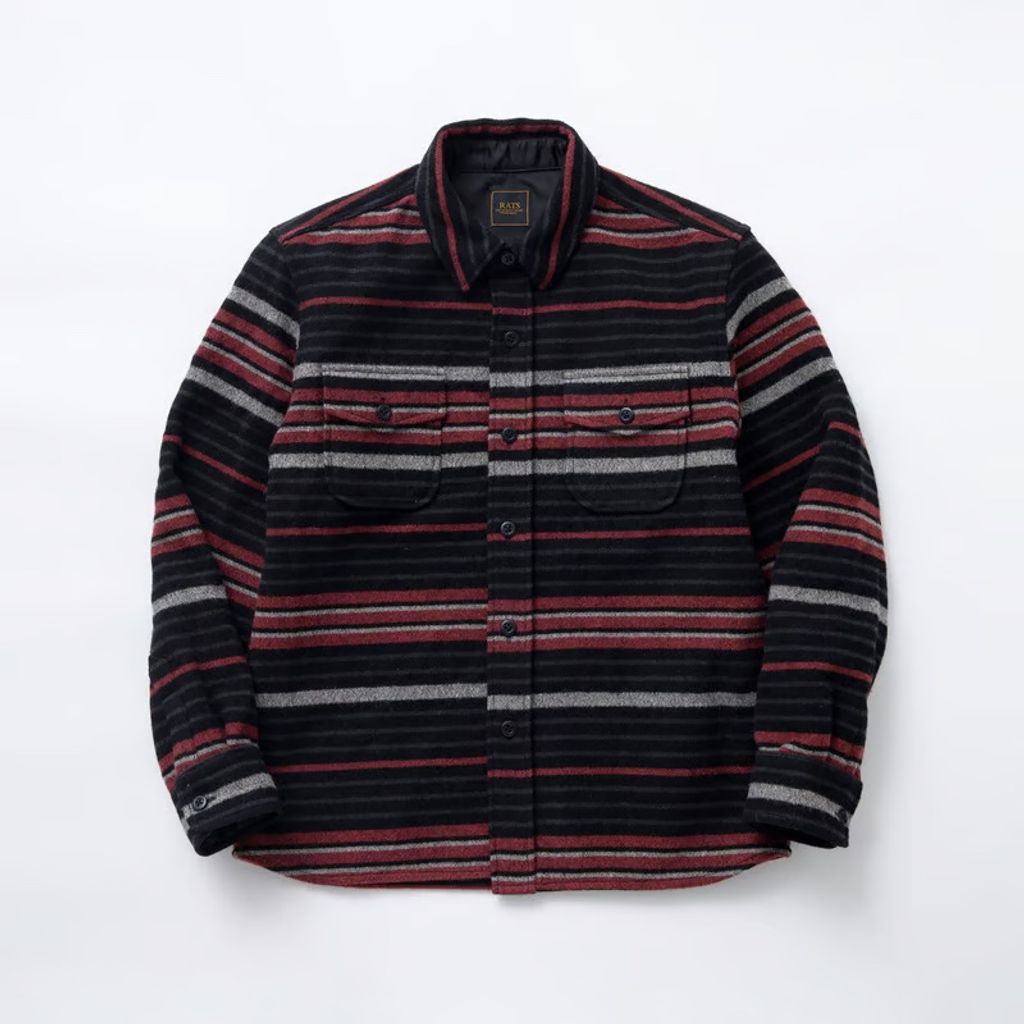 細かで不規則な凹凸感のあるアムンゼン織りを採用した素材で高級感ある表情が特徴。フロント胸元にフラップ付きポケットを配置したデザイン。ボタンもRATS、WAY OF LIFEのロゴをプリントしたオリジナル。