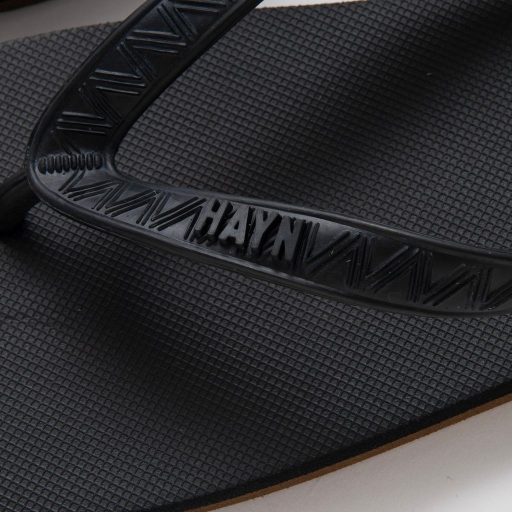 屈曲性・クッショニング性能に富む最高峰のSL天然ゴム素材を使用したビーチサンダル。足に接地するトップソールは柔らか、地面に接地するアウトソールは硬さのある2重構造となっており、履き心地と耐久性に優れた仕様。踵部分にサークル型グラフィック・BLACKAND YELLOWのレターグラフィックをラバープリントで表現したデザイン。1色1サイズ展開。(25cm〜29cmまでカバーするサイズ感。)ハワイ生まれのビーチサンダルブランド、<HYAN(ハイアン)>とのコラボレーションモデル。
