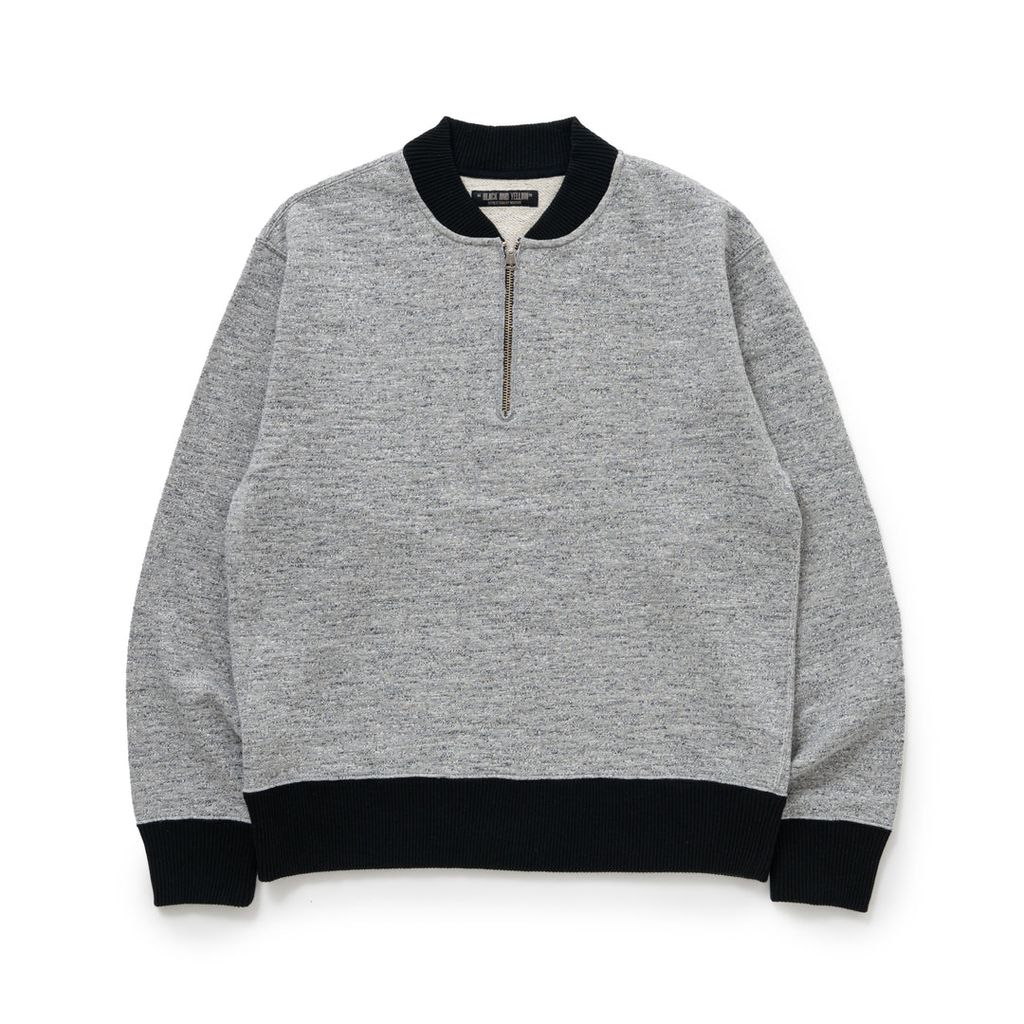 オリジナルで作成した12.5oz.のアメリカンスラブコットン裏毛素材を使用したハーフジップスウェットシャツ。ネップ感のある杢目のある表情、襟・袖・袖には身頃と配色を切り替えたヴィンテージ調のリブを配置。ファスナーはWALDES製扇子型ジッパーを採用。ワンウォッシュ仕上げ。身幅はややタイトなシルエット。1色5サイズ展開。