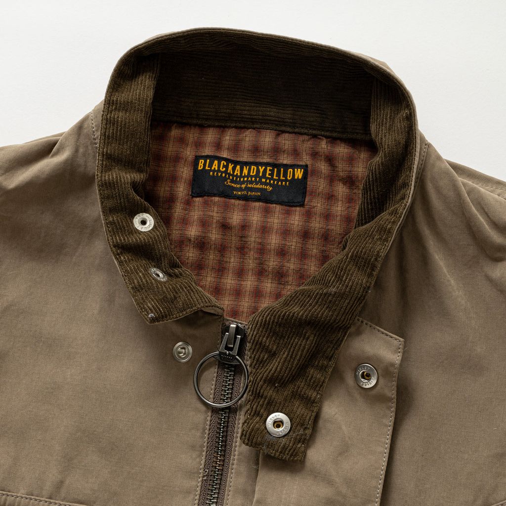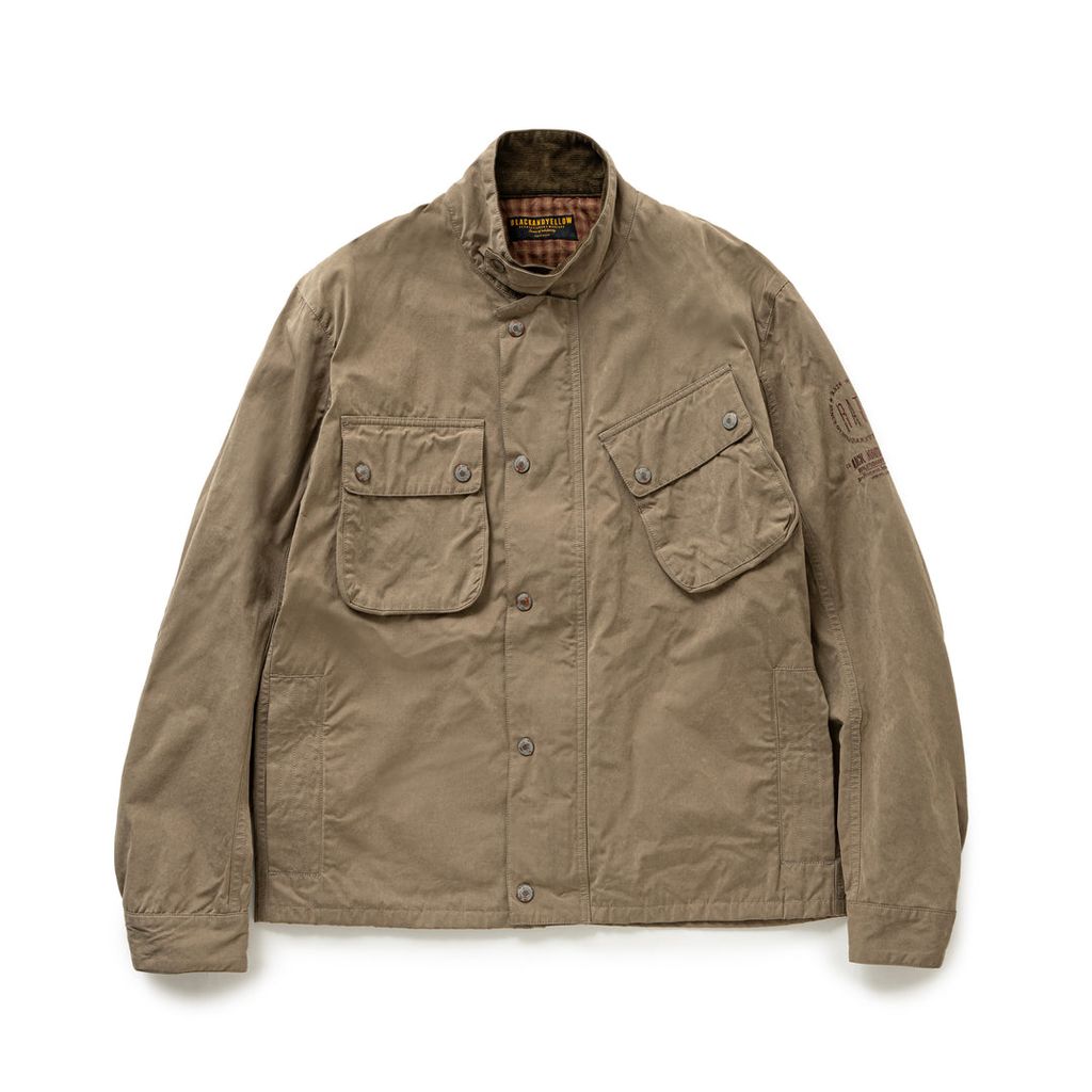 撥水性・防風性に富むコットン/ポリエステル/ナイロンの三者混生地を使用したライディングジャケット。両胸のフラップポケットは左側のみ斜行させた仕様。左袖にRATSロゴ・レターグラフィックを直刺繍。ポケットマチ・脇下マチにベンチレーション、背面腰位置にアジャスターベルト、背裏にチェック生地を配置。着丈はやや短め、身幅にややゆとりのあるシルエット。製品にてワンウォッシュ済み。2色5サイズ展開。