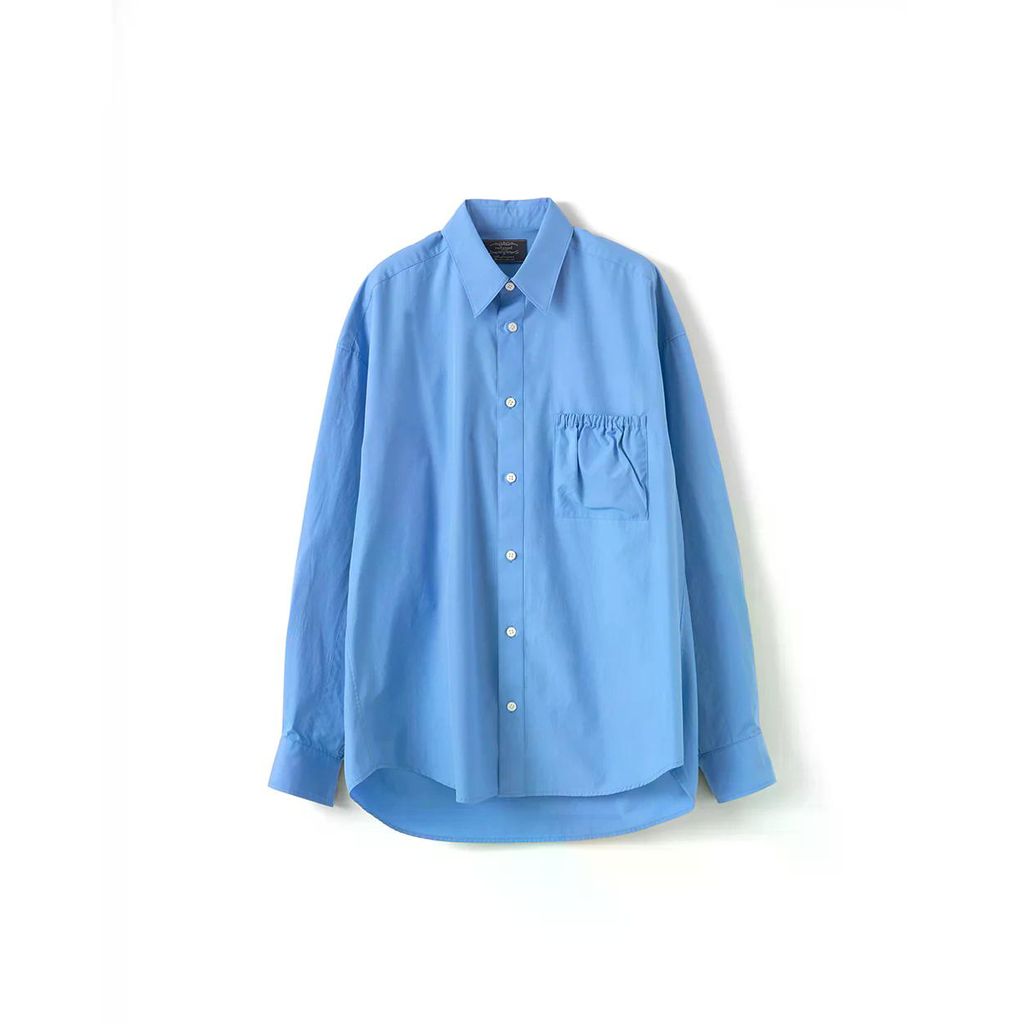 身体が内側へと沈み込む構造を意識して設計された新型シャツ。長年、同じ作業台に向かい続けた職人をイメージしています。生地はコーコランを使用した高密度ブロードを使用。独特なシルエットが特徴的です。