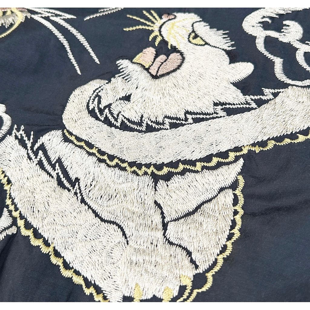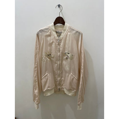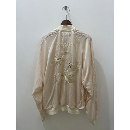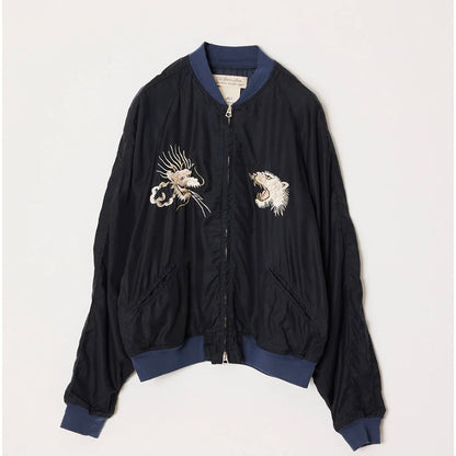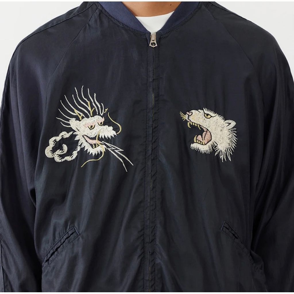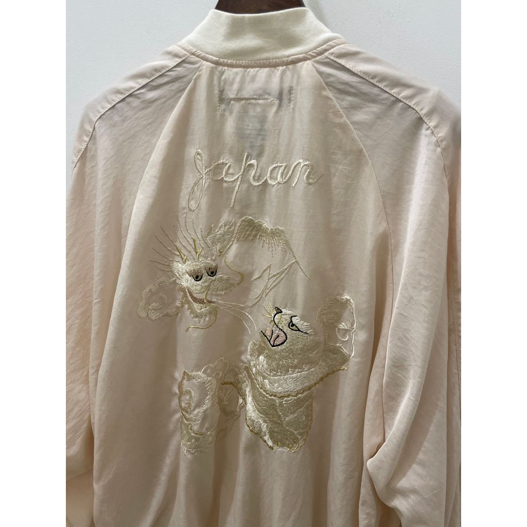 往年のスカジャンを上品にアップデートさせ、シャツのように軽い生地なので春夏に軽い羽織りとしてコーディーネートがしやすいアイテムです。