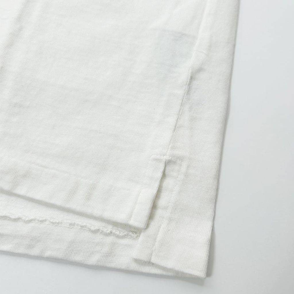 さらに、裾にはさりげないサイドスリットを加え、シンプルなTシャツとは一線を画す洗練されたデザインに。