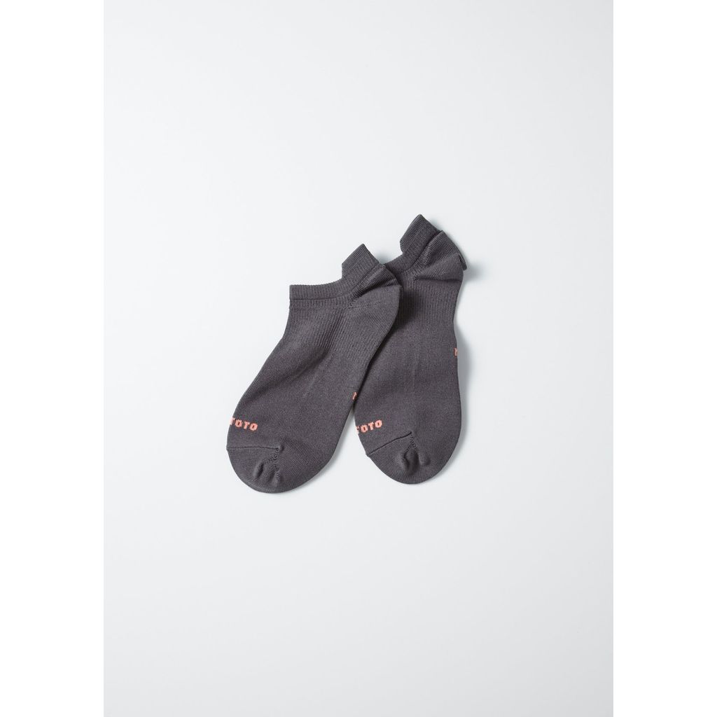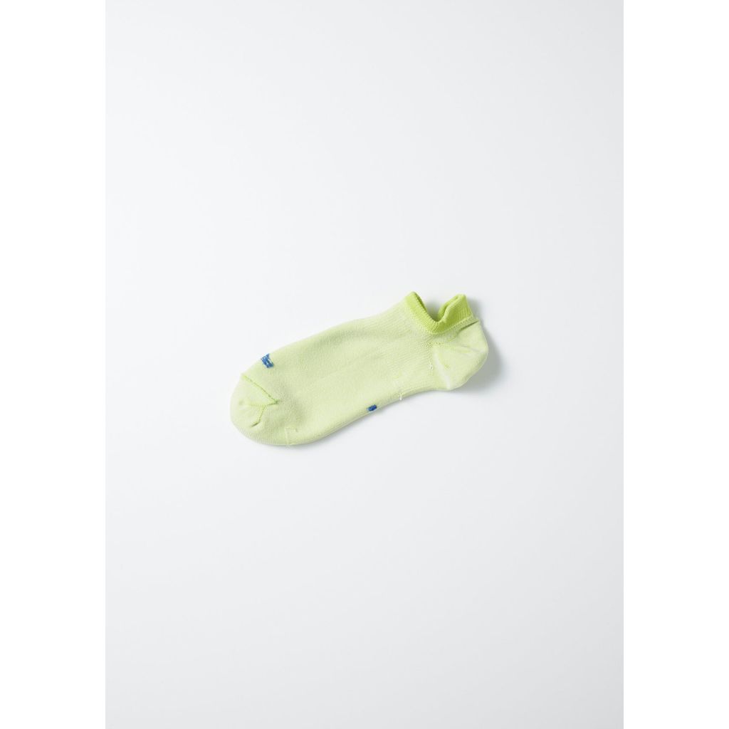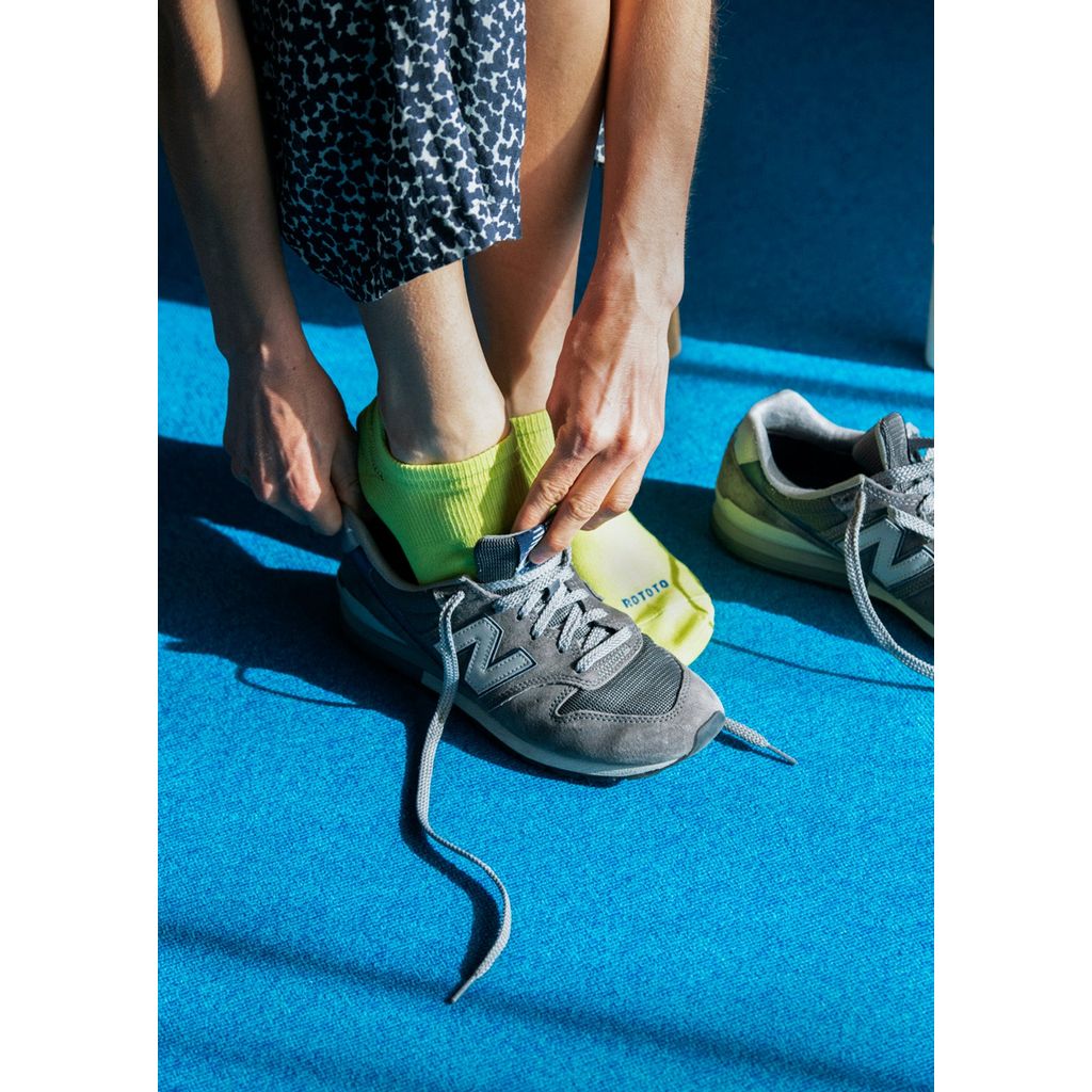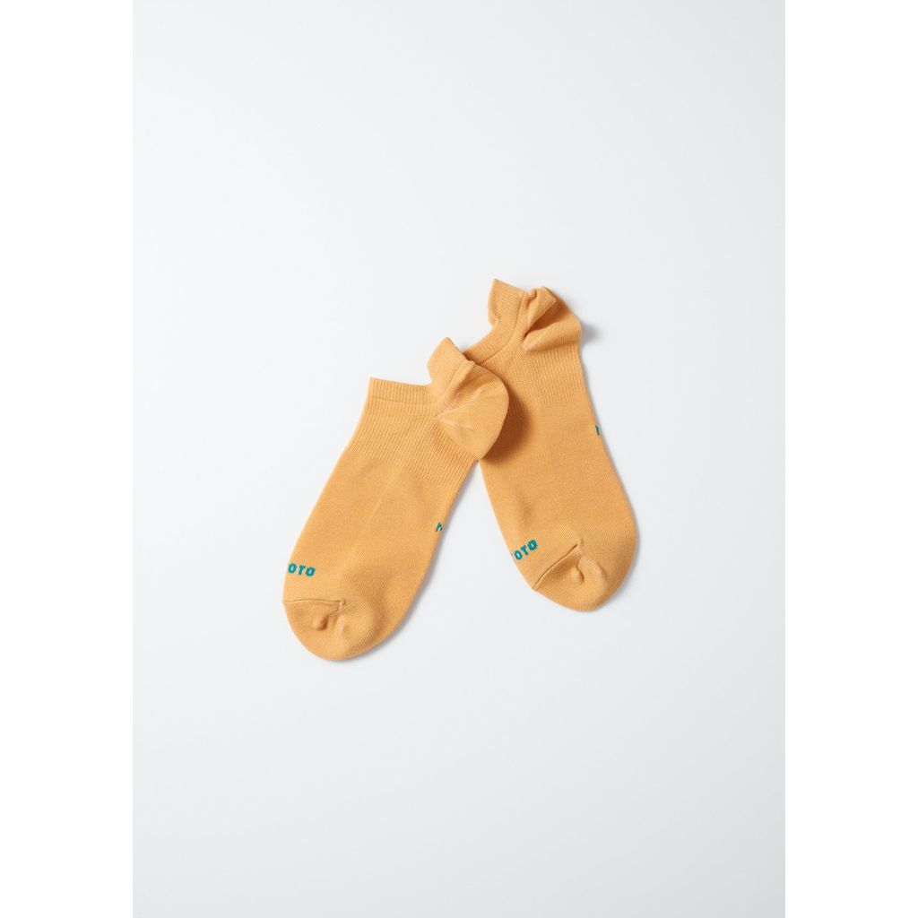 スニーカー用に開発したフットカバー「R1355 SNEAKER FOOT COVER」が、今シーズンから素材をアップグレード。オーガニックコットンとペットボトルを再利用したリサイクルポリエステルの混紡糸を使用し、コットンの肌あたりの良さと、ポリエステルの軽量性、速乾性、耐久性を兼ね備えた生地になりました。一般的なソックスと比べて立体的にデザインされたかかと部分を挟み込むようにゴムを入れることで、脱げにくい仕様に。スニーカーからソックスが見えにくい丈感もポイントです。