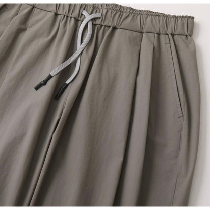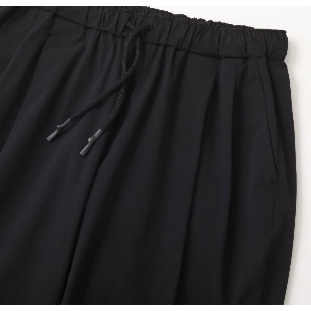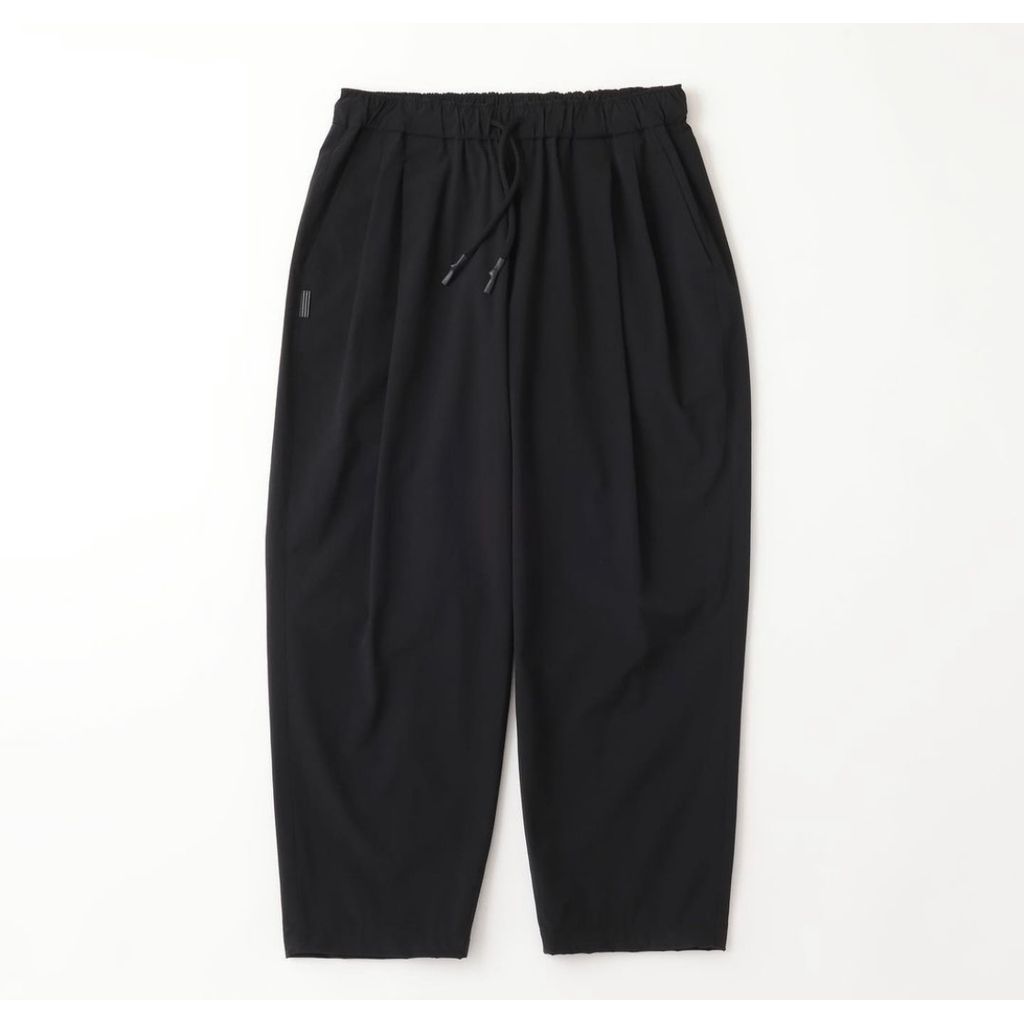 腰回りやワタリは太めに設定しながら少しテーパードをかけたすっきりしたシルエットのワイドパンツ。