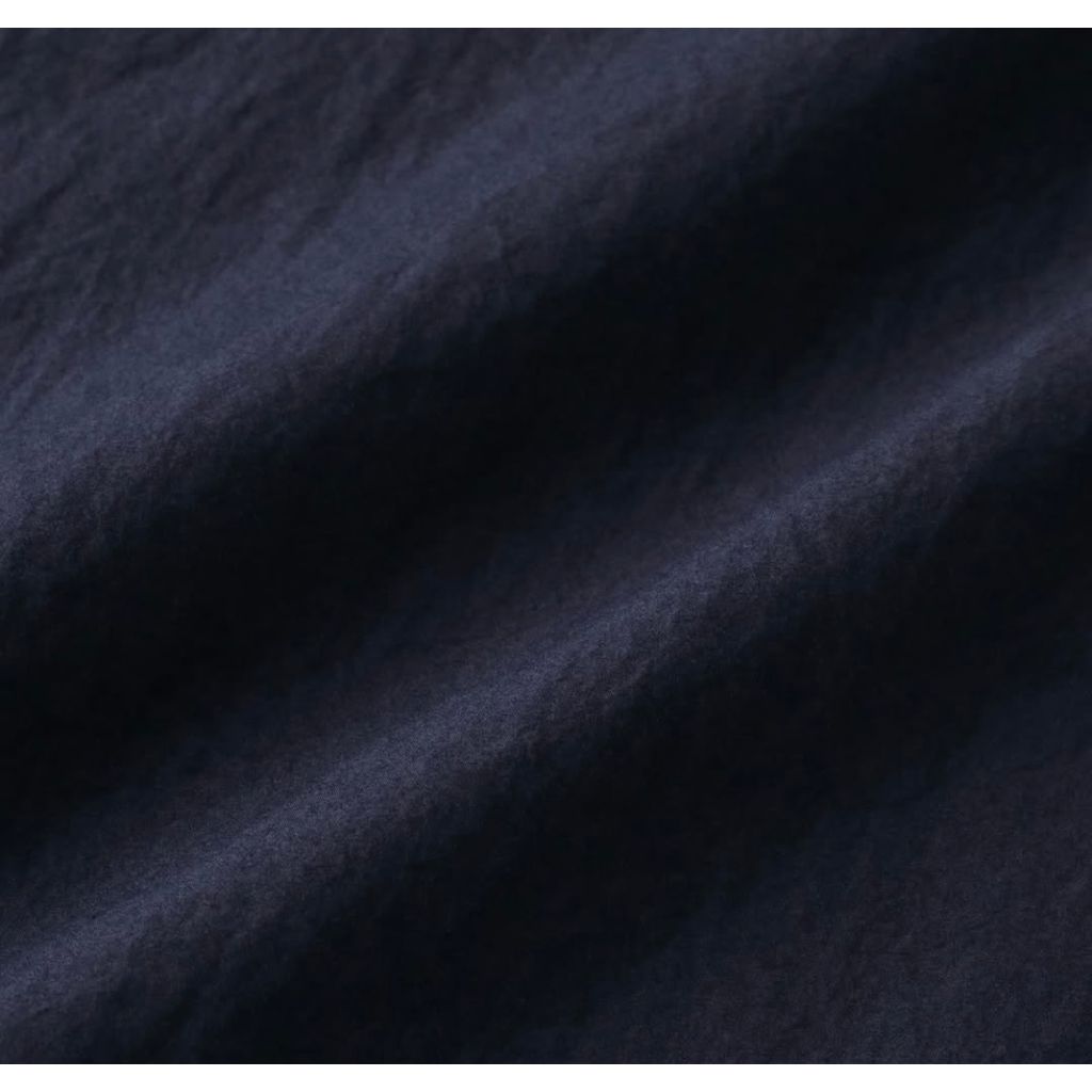 細番手の高密度な生地を時間をかけてゆっくりともみほぐす事で、生地の膨らみやナチュラルなシボを最大限に出し、樹脂を付けてのワッシャー加工をしているので、独特のぬめりやヴィンテージ風の風合いが出ています。