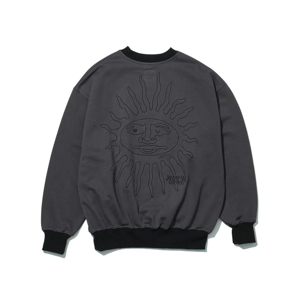 オリジナルパターンを採用。身幅や袖周りが広く、着丈の短いゆったりとしたBOX シルエットです。しっかりとしたループ裏毛の生地を使用。ざらっとした表面の質感に加えて、裏面は優しい肌触りが特徴でアメリカらしさと高級感のバランスの取れたしたオリジナルスェットシャツ。胸と背中にロゴを配置しました。