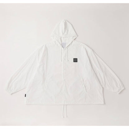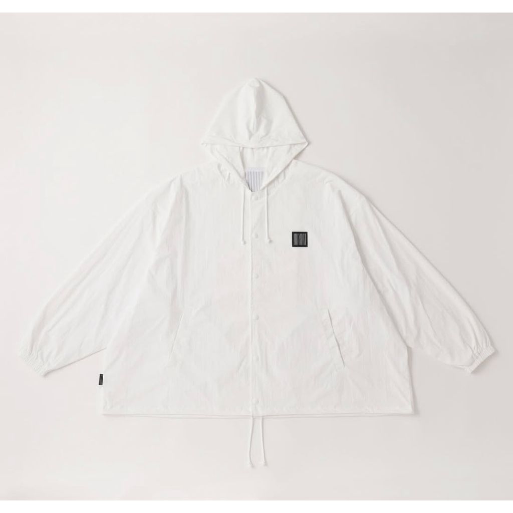 フード付きワイドシルエットのコーチ JACKET。素材は快適な着心地のストレッチナイロンを使用。タスラン糸によるコットンタッチのドライ感とナイロン特有のしなやかな風合いを兼ね備えたナイロン素材です。ワッシャー加工を施しているのでシワを気にせず着用可能です。